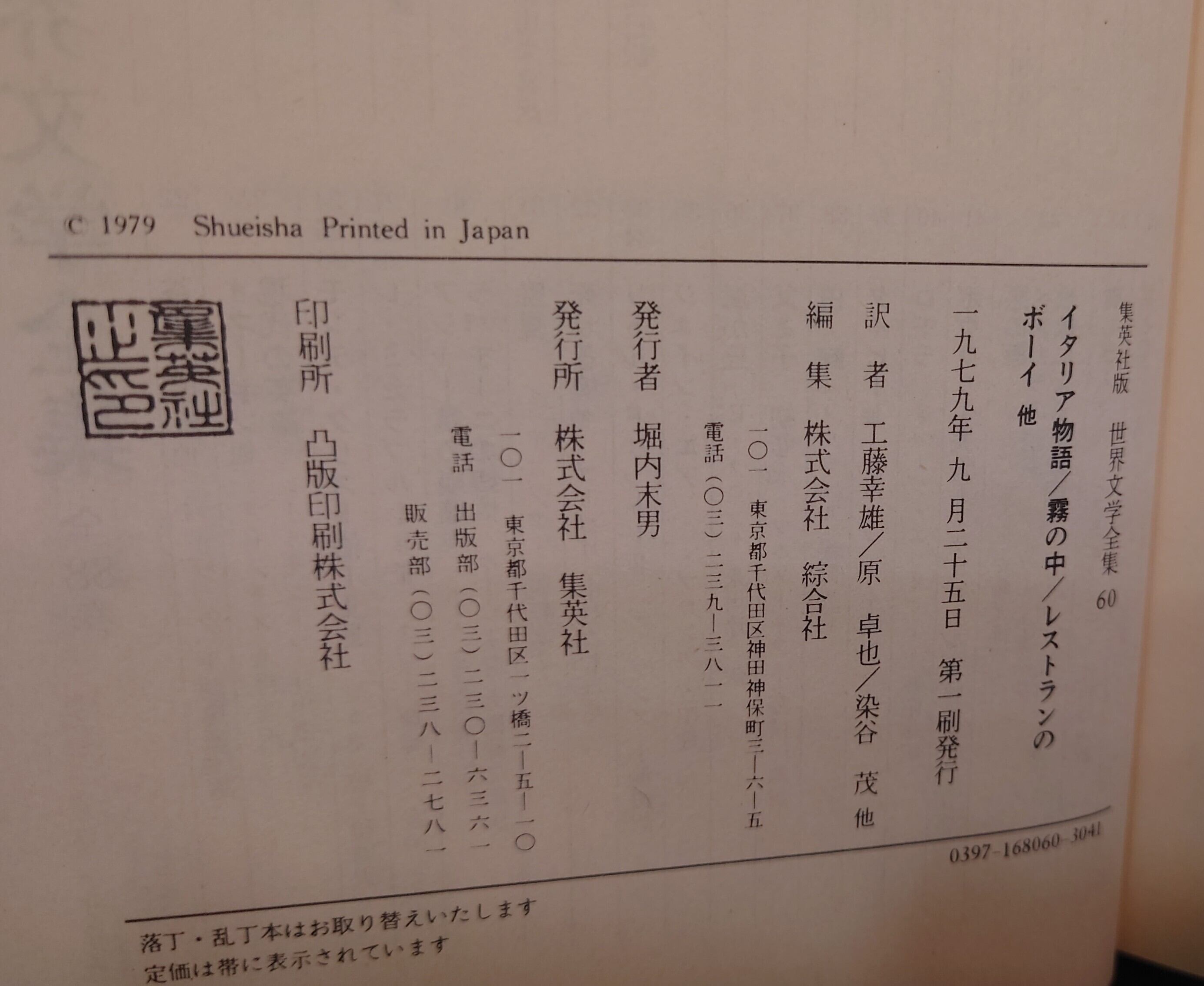 <古書>集英社/1979年9月25日1刷/四六判/408頁/装幀・坂野豊