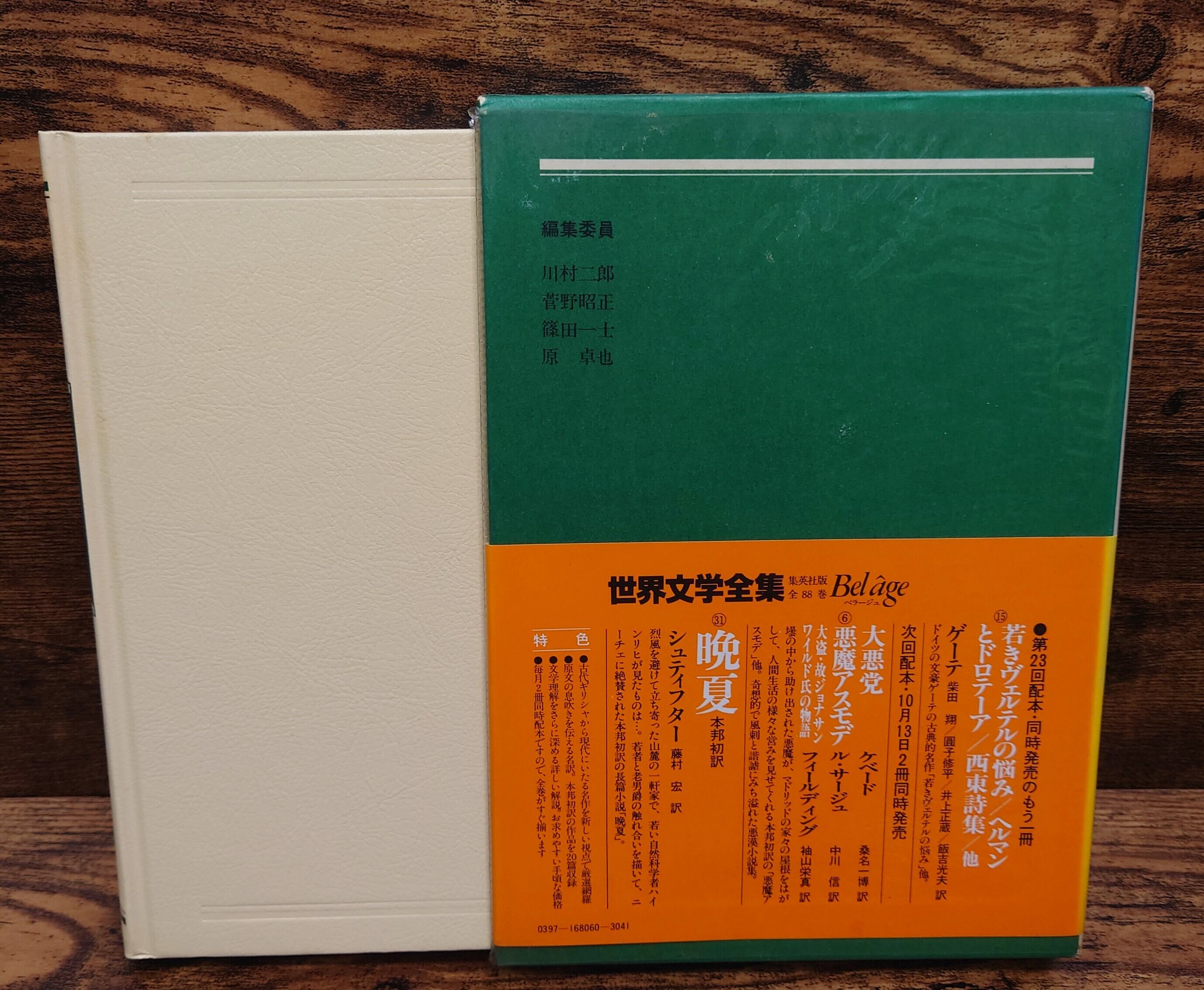 函ビニカバ、スレ、キズ、皺ヨレ、縮み、ヤケ、一部破れ。函本体、ヤケ、シミ、縁にキズ傷み。本体カバー無し。表紙、スレ、薄くヤケ、僅かにシミ。天地小口、ヤケ強め。本文、少ヤケ。通読に支障はありません。古書感ご承知おきください。函帯ありますが、背は色あせ強く、文字が消えかけています。登場人物表あり(収録の2作品に付いてのみ)。
