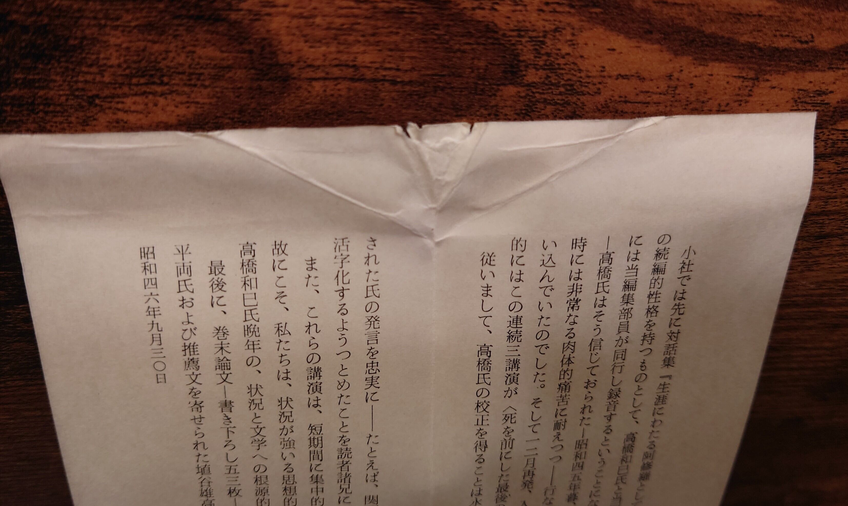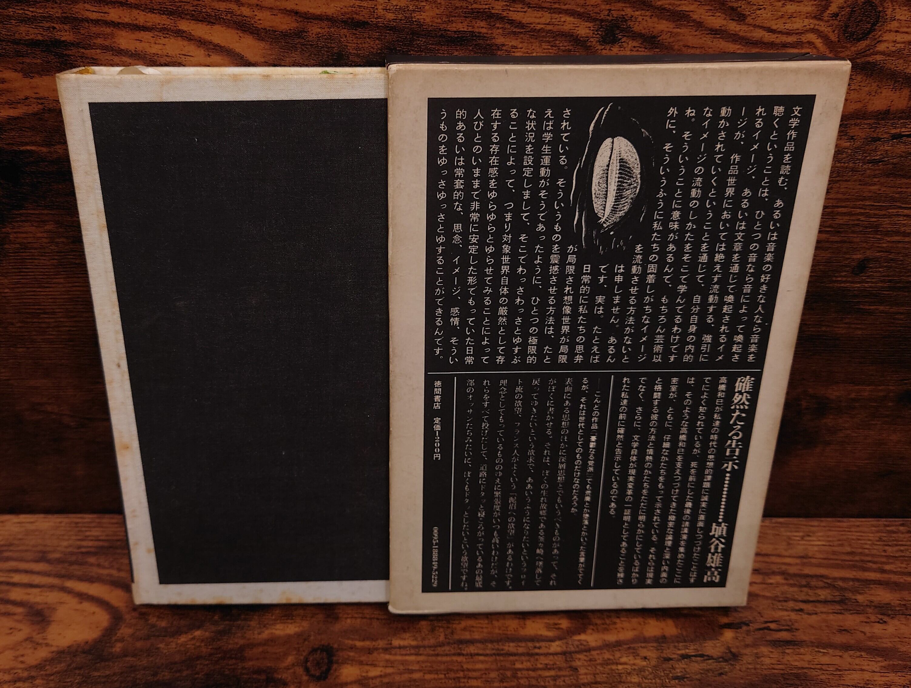 <古書>高橋和巳・著/徳間書店/昭和49年9月25日6版/四六判/248頁 函、スレ、キズ、ヤケ、シミ、汚れ、濡れシミ跡。函、状態は良くありません。本体カバー無し。表紙、スレ、ヤケ、全体にシミ多め。天地小口、少ヤケ、少シミ。本文、薄くヤケ、一部シミ。通読に支障はありません。古書感ご承知おきください。帯無し。読者へのメッセージありますが、折れやつぶれで傷み強いです。画像参照ください。 管理番号IK14