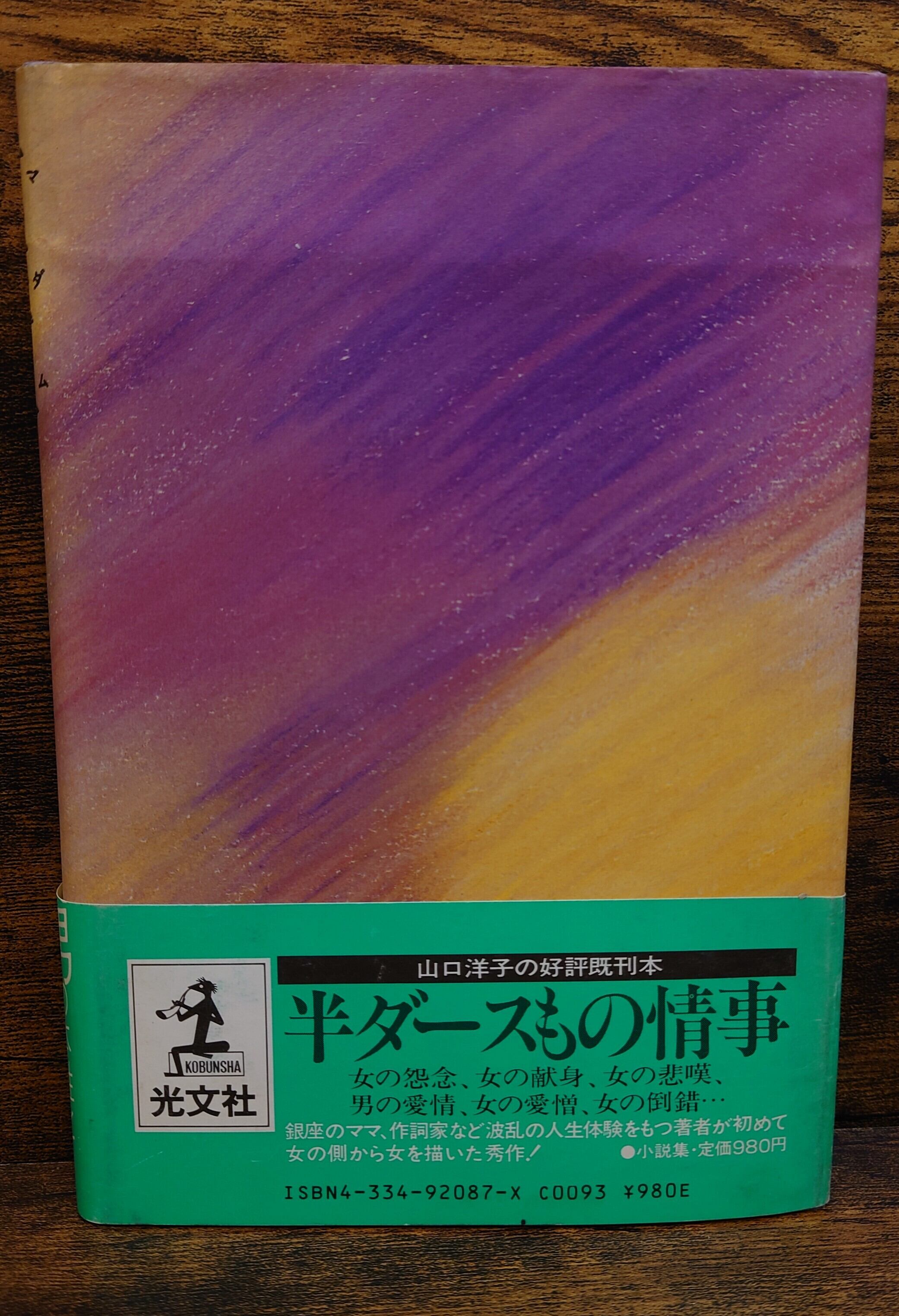 <古書>山口洋子・著/光文社/1983年2月初版1刷/四六判/227頁 カバー、スレ、キズ、縁ヨレ、少ヤケ。天地小口、ヤケ、シミ汚れ強めにあります。本文、ヤケ、周辺部シミ。帯ありますが、スレ、シミ汚れ。通読に支障はありません。古書感ご承知おきください。美品ではありませんのでご了承ください。読めれば良いという方向き。 管理番号M-文芸