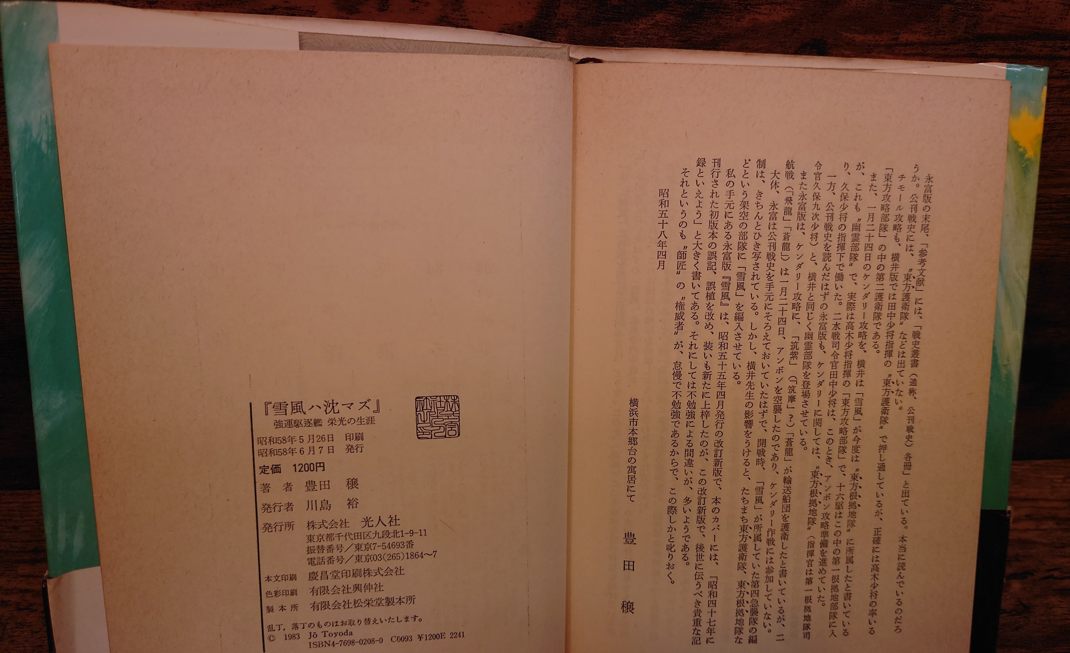 <古書>豊田穣・著/光人社/昭和58年6月7日初版/四六判/270頁 カバー、スレ、キズ、ヨレ、少ヤケ、色褪せ少し。天地小口、ヤケ、シミ、汚れ。本文、ヤケ、周辺部少しヤケ強め、一部シミ。通読に支障はありません。古書感ご承知おきください。帯ありますが、スレ、キズ、ヤケ、破れ、皺ヨレ、傷みあります。美品ではありませんのでご了承ください。 管理番号M-文芸、戦記