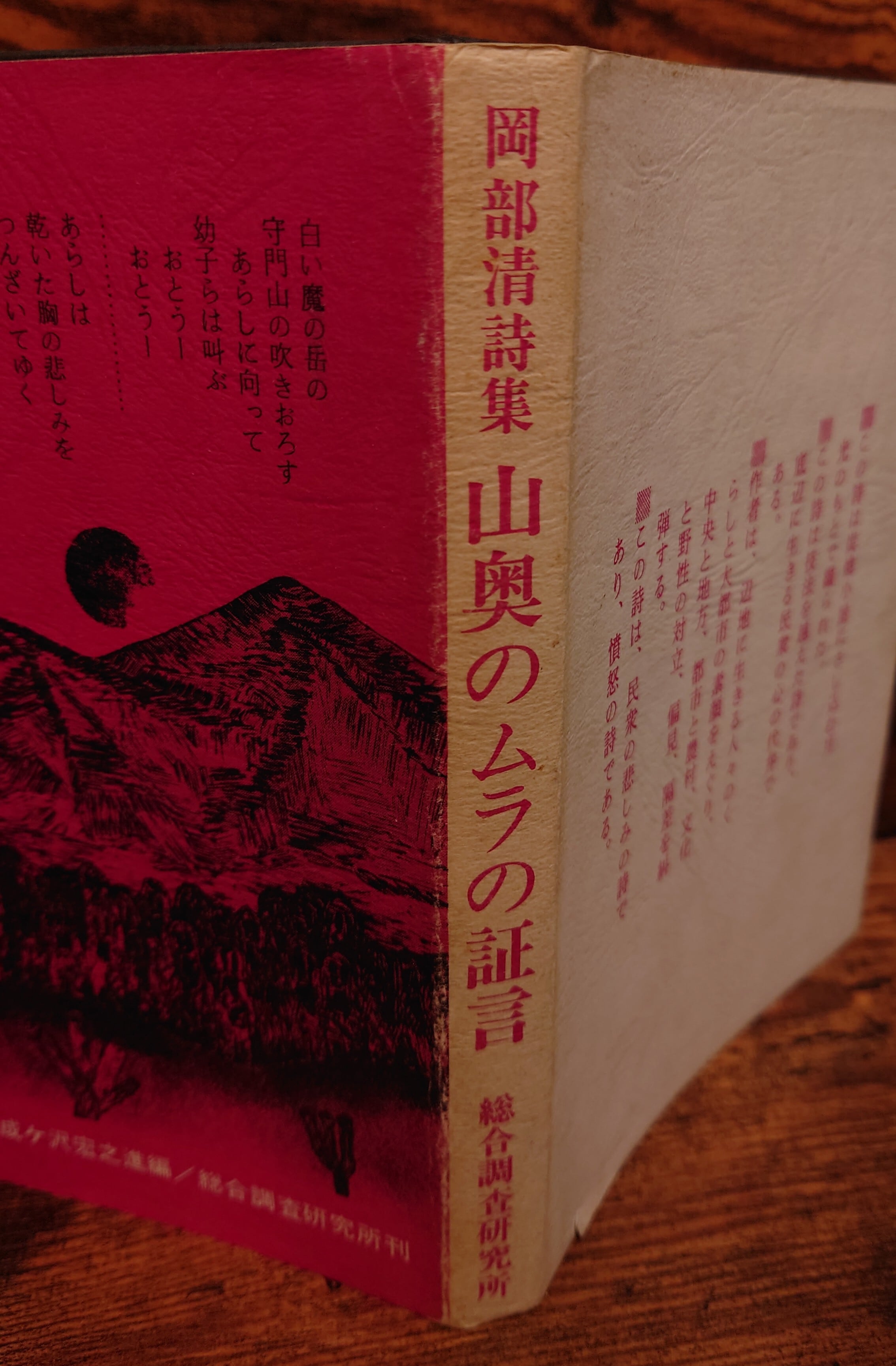 <古書>岡部清・著/総合調査研究所/昭和51年11月1日初版/四六判/164頁 カバー、スレ、キズ、ヨレ、ヤケ、シミ、汚れ、縁に傷み、破れ1カ所あり。天地小口、ヤケ、少キズ、僅かにシミ。地にペンキズ。本文、ヤケ、一部僅かにシミ。通読に支障はありません。古書感ご承知おきください。帯無し。 巻頭の寄せる言葉は井上光晴。 管理番号M-文芸、詩集