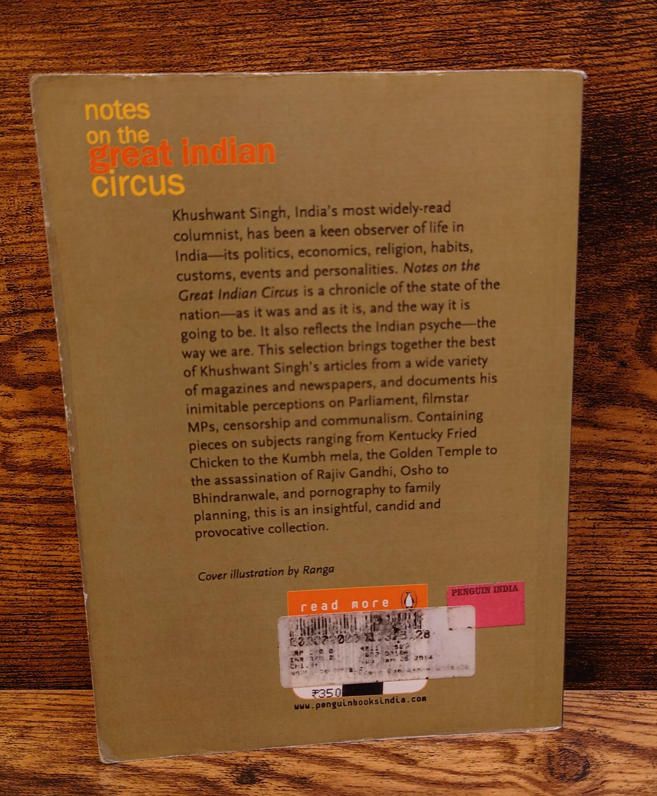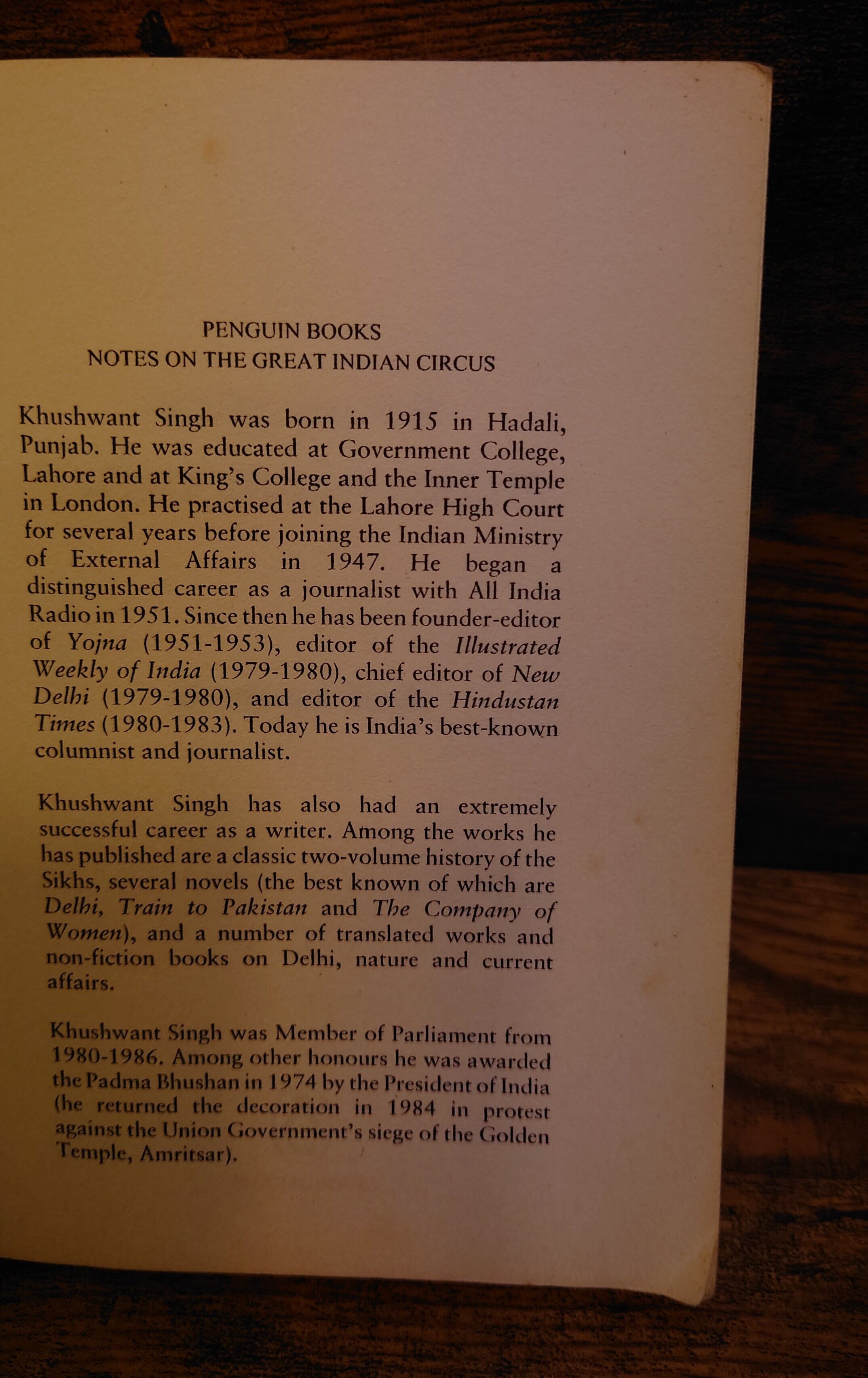 <古書> Khushwant Singh著/Penguin Books India/2001年/12×16.5㎝/293頁/英文 裸本。表紙、スレ、キズ、ヨレ、クスミあり、縁ヨレ傷み、角折れあり。天地小口、ヤケ、シミ。本文、ヤケ、前半は下角折れあり、鉛筆の書き込み、線引き、囲みがあります。通読に支障はありません。古書感ご承知おきください。使用感強いです。美品ではありませんのでご了承ください。読めれば良いという方向き。帯無し。 管理番号M-洋