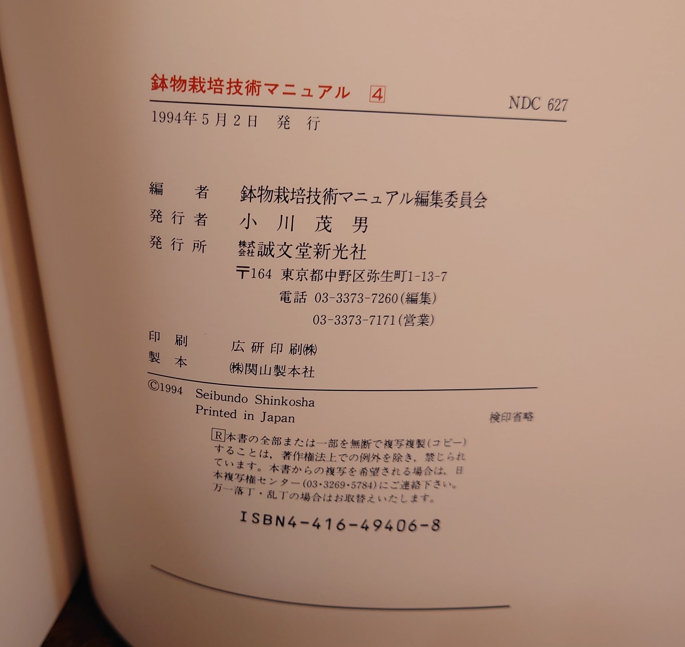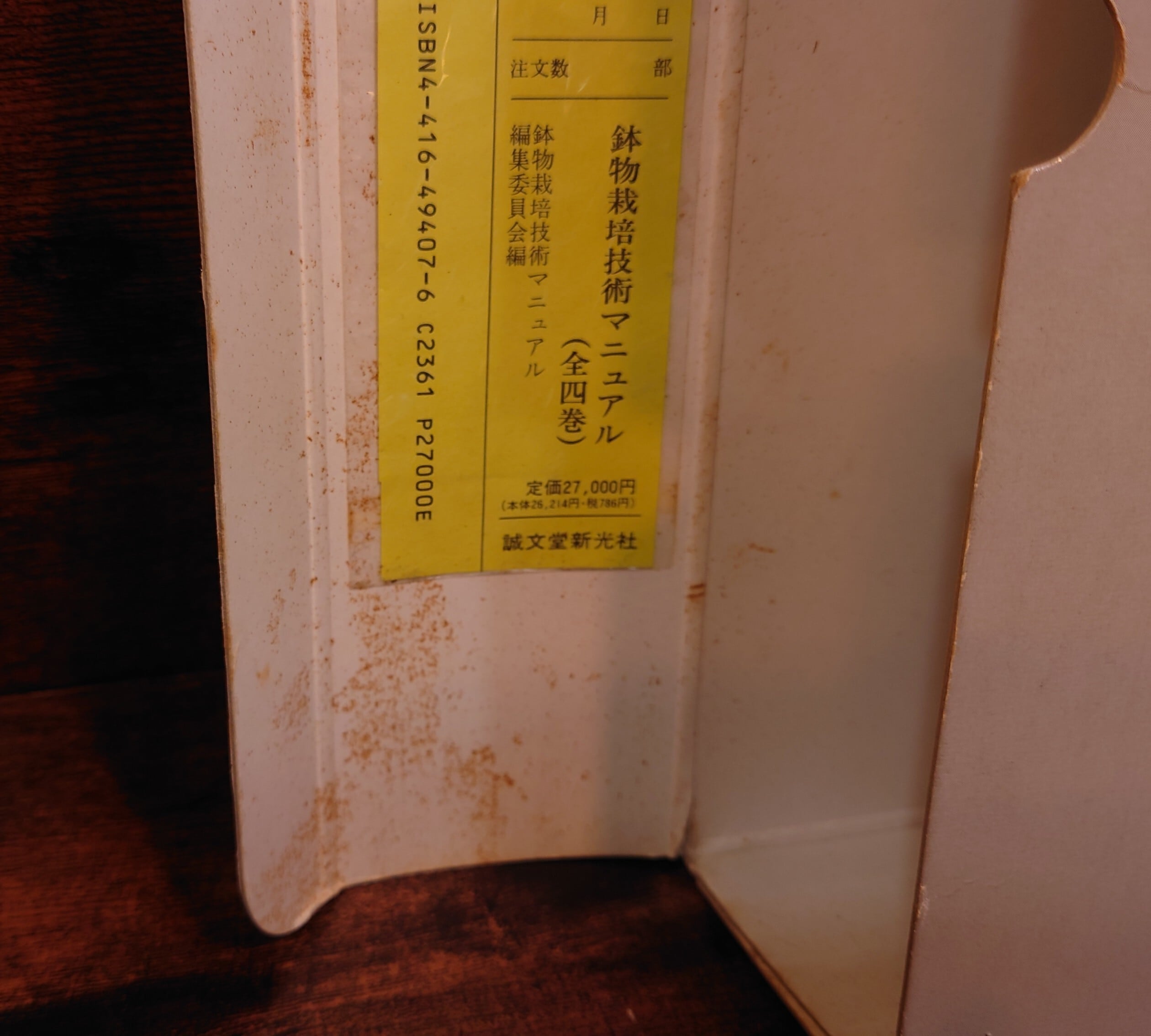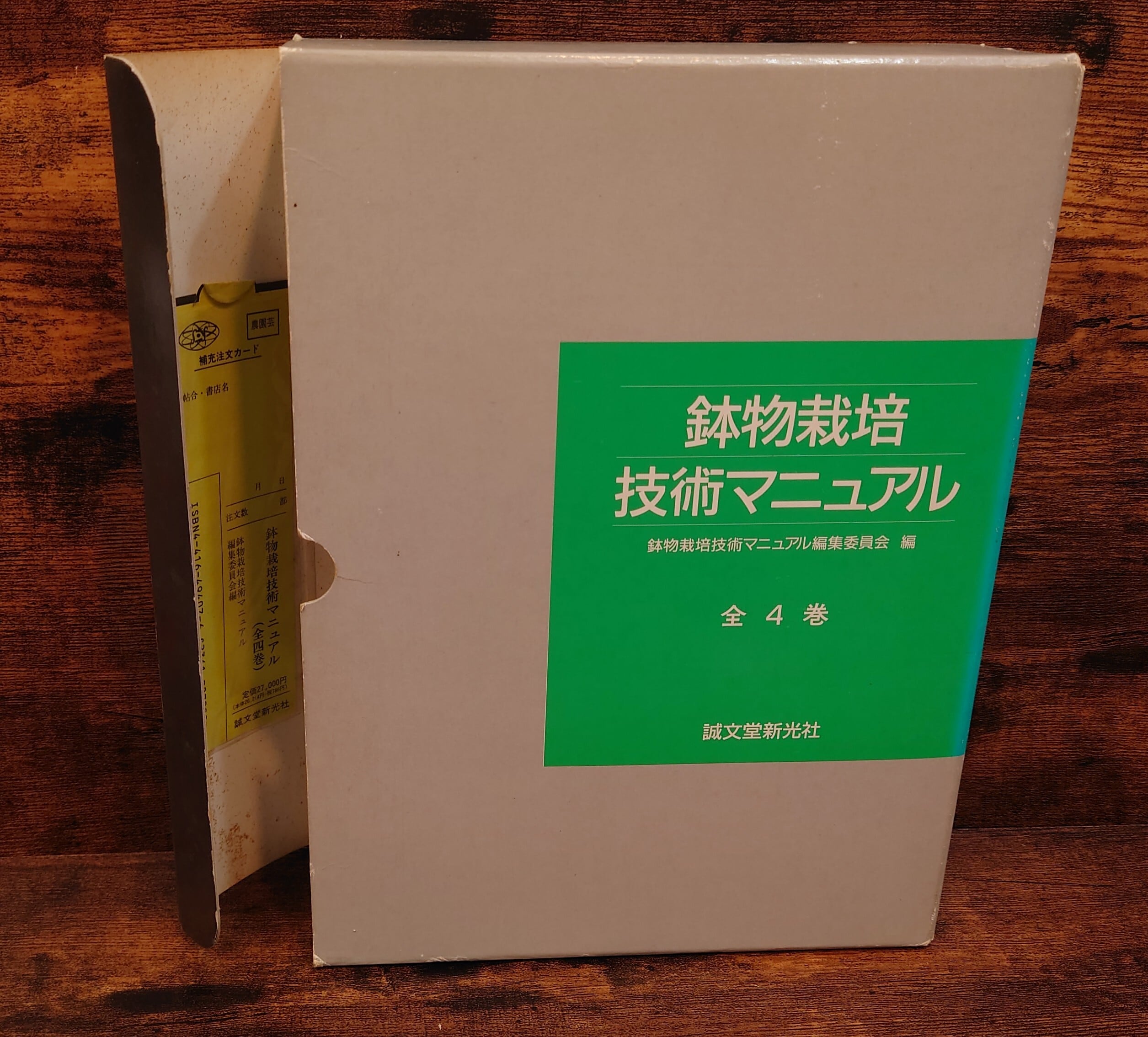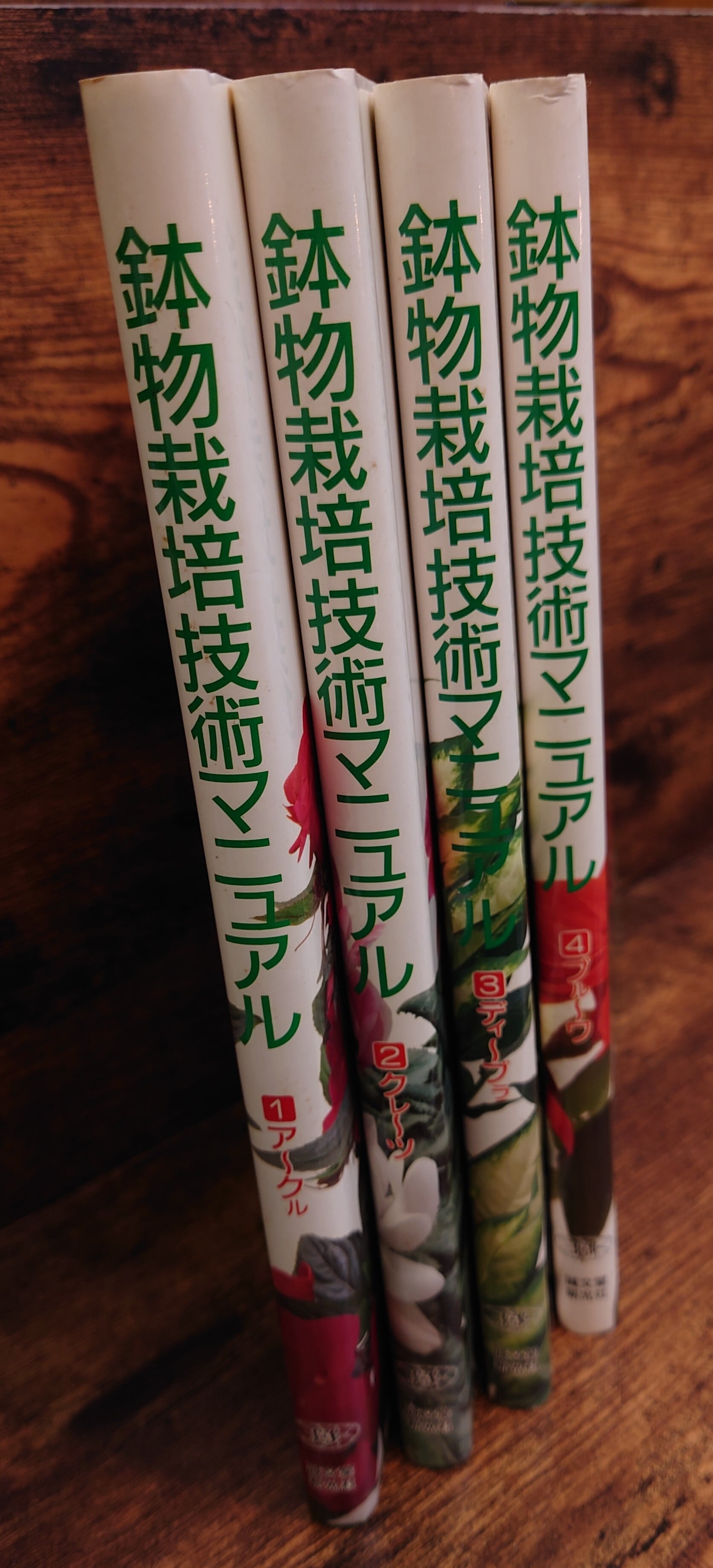 <古書>鉢物栽培技術マニュアル編集委員会・編/誠文堂新光社/1994年5月2日初版/B5ワイド/各165頁~183頁 函、スレ、キズ、ヤケ、色褪せ、傷み少し、内側はシミ。本体カバー、スレ、キズ少々、薄くヤケ。天地小口、少ヤケ。本文、薄くヤケ。使用感は少ないです。 植物名のアイウエオ順で4冊分冊。 管理番号M-植物、農