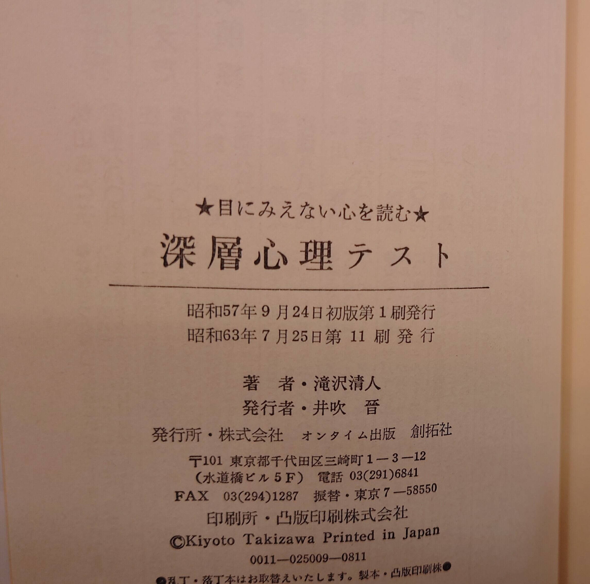 <古書>滝沢清人・著/創拓社/昭和63年7月25日11刷/四六判/238頁 カバー、スレ、キズ、ヨレ、薄くヤケ、背は色褪せ少し。天地小口、少ヤケ、少キズ、少汚れ、僅かにシミ。本文、薄くヤケ。使用感は少ないです。帯無し。並。 管理番号M-心理、実用