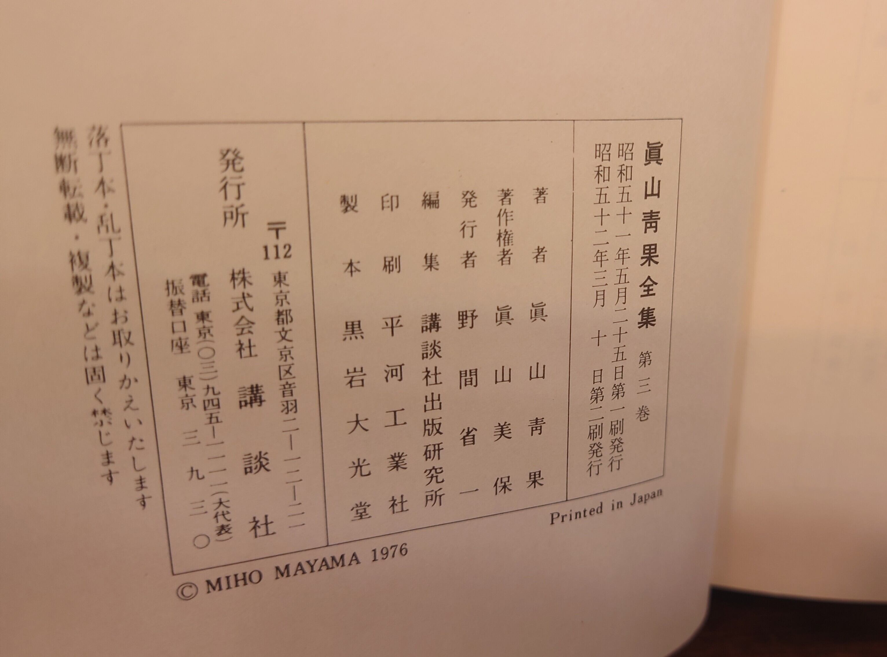 <古書>講談社/昭和52年3月10日2刷/四六判/673頁 函、スレ、キズ、ヤケ、シミ、汚れ。本体パラフィンカバー、皺ヨレ、少ヤケ、一部破れ。天地小口、少ヤケ、少シミ。本文、少ヤケ。通読に支障はありません。帯無し。 管理番号IK42