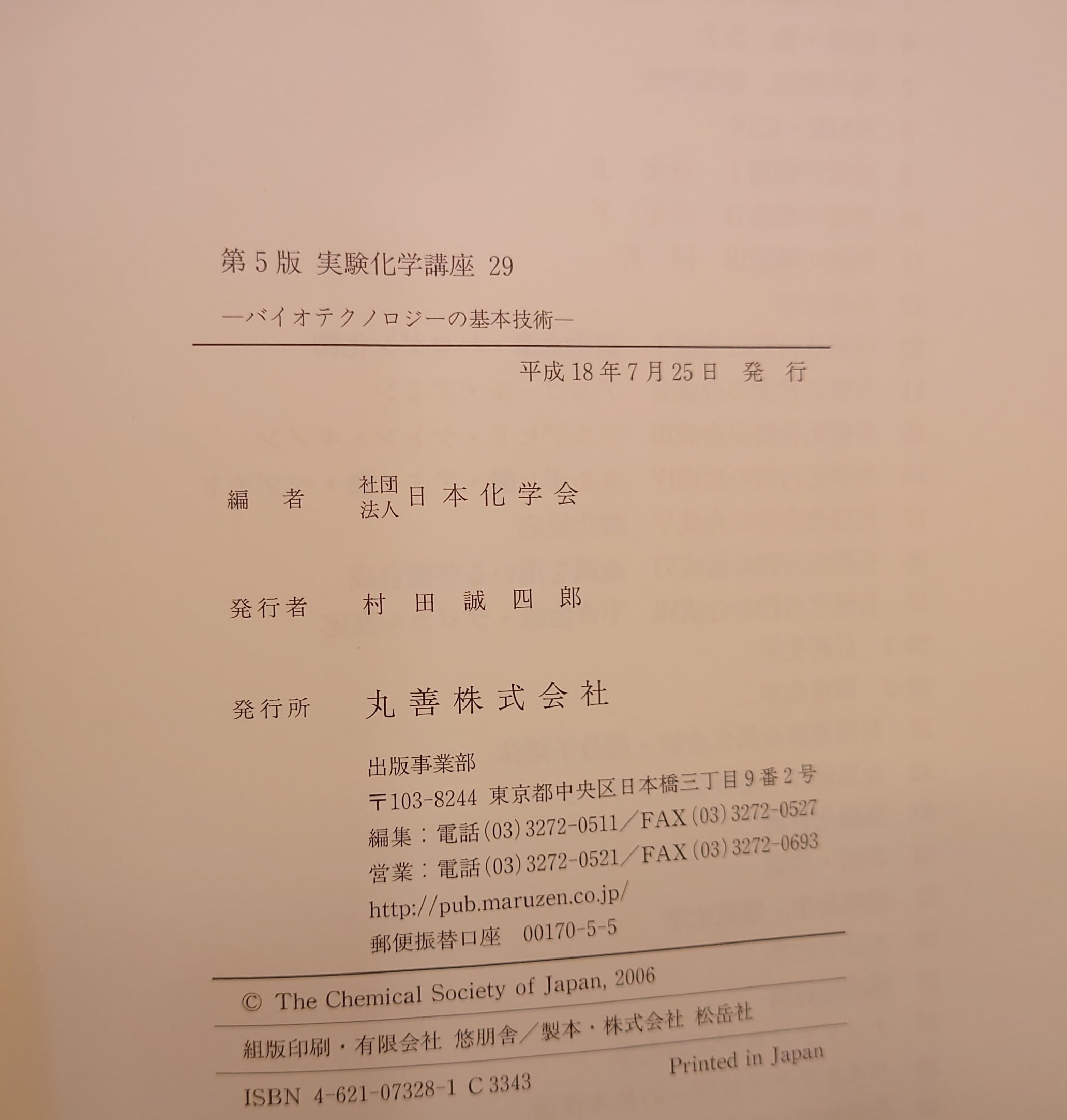 <古書>日本化学会・編/丸善/平成18年7月25日/A5/446頁 カバー、スレ、キズ、ヤケ、背は色あせ強め。天地小口、少ヤケ、少シミ。本文、薄くヤケ、一部に上角折れがあります。通読に支障はありません。古書感ご承知おきください。帯無し。 管理番号M-科学、生化学