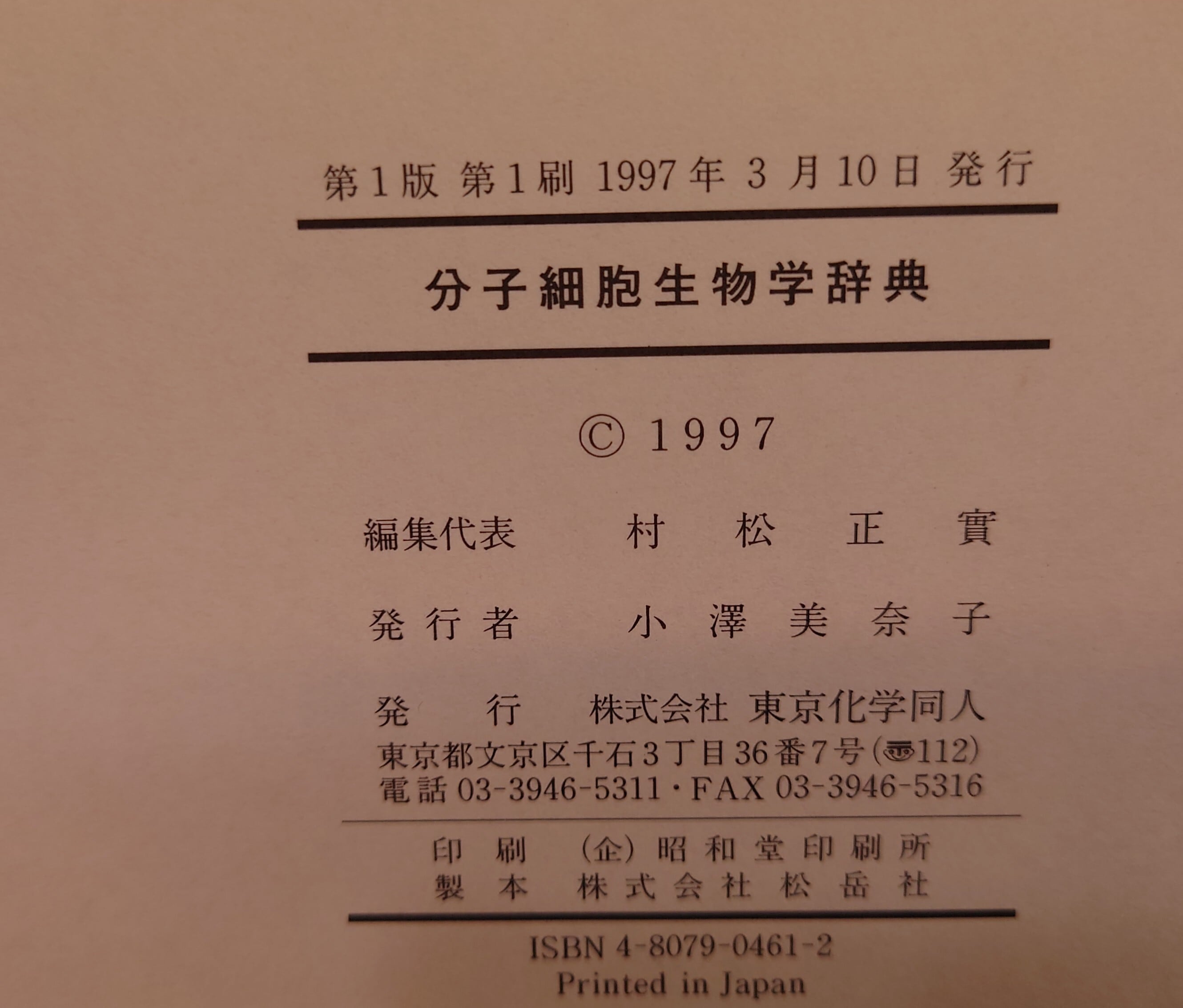 <古書>編集代表・村松正實/東京化学同人/1997年3月10日1版1刷/A5/1025頁 函、無し。本体ビニカバ、スレ、キズ、少ヤケ、一部破れあり。天地小口、ヤケ、シミ、汚れ。本文、薄くヤケ。通読に支障はありません。古書感ご承知おきください。帯無し。見返しに蔵印あり。 管理番号M-科学、生物