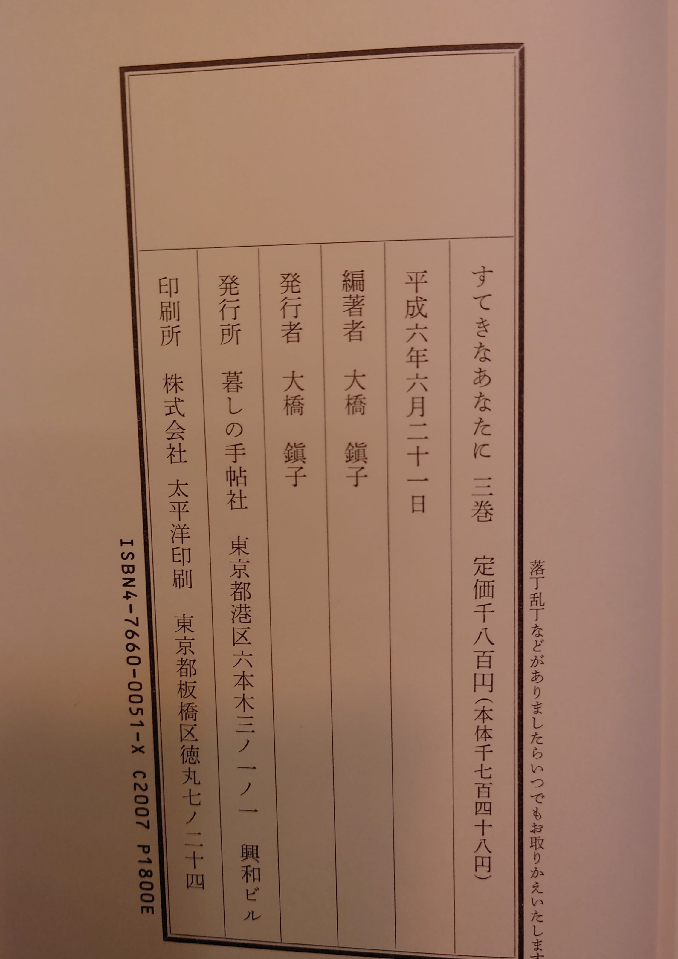 <古書>大橋鎮子 ・編集/暮しの手帖社/平成6年6月21日初版/A5/325頁 函、スレ、キズ、ヤケ、汚れ強め。本体カバー無し。表紙、スレ、キズ、小ヤケ、背ヤケ強め、シミ少し。天地小口、小ヤケ、少シミ。本文、薄くヤケ、蛍光ペンの線引き少しあり。通読に支障はありません。古書感ご承知おきください。帯無し。 管理番号M-実用