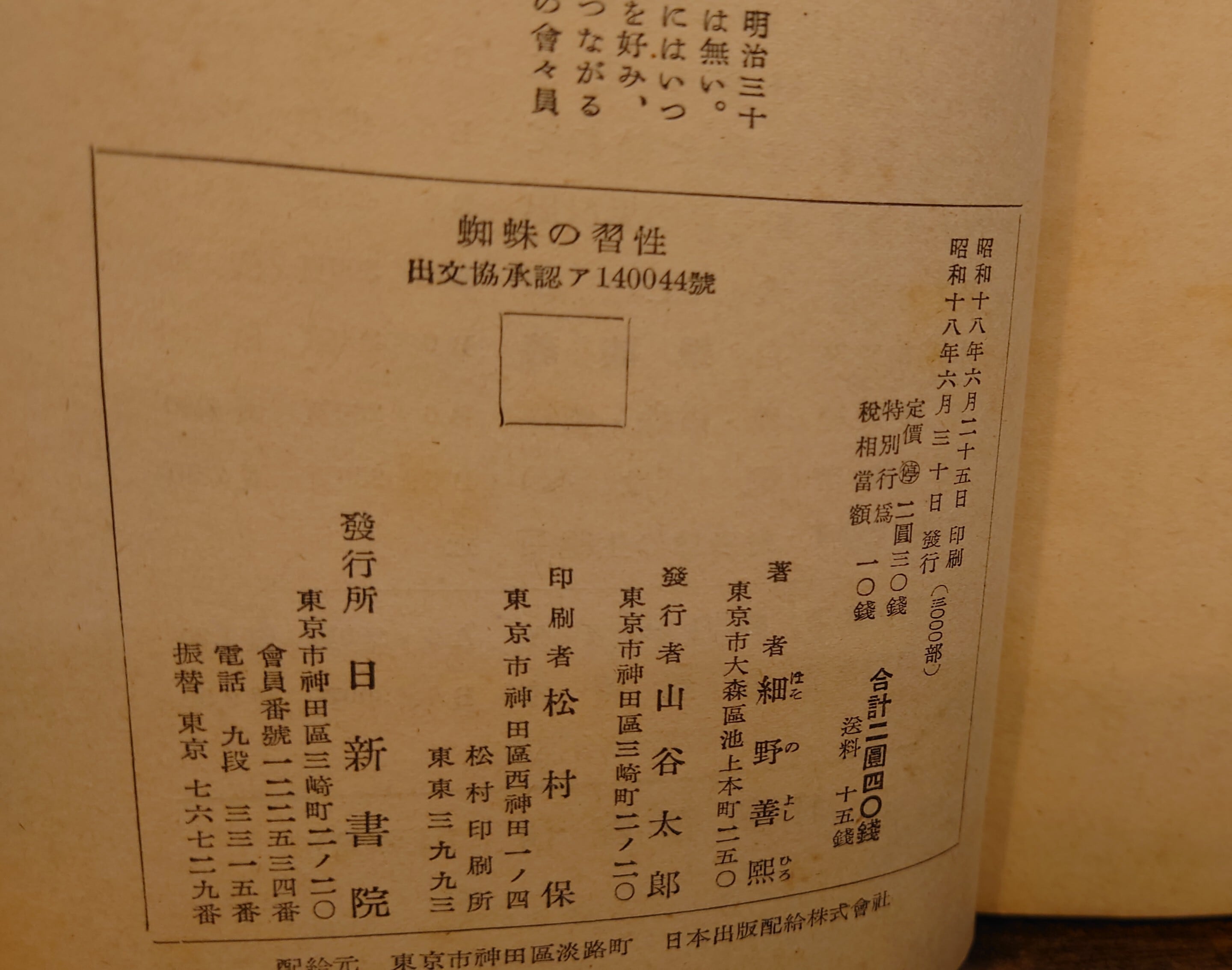 <古書>細野善熈・著/日新書院/昭和18年6月30日初版/B6/333頁 表紙、スレ、キズ、ヤケ、シミ、汚れ。天地小口、強いヤケ、シミ、キズ。本文、ヤケ、シミ。一部シミ強めのページあります。通読に支障はありません。古書感ご承知おきください。帯無し。美品ではありませんのでご了承ください。 管理番号M-生物