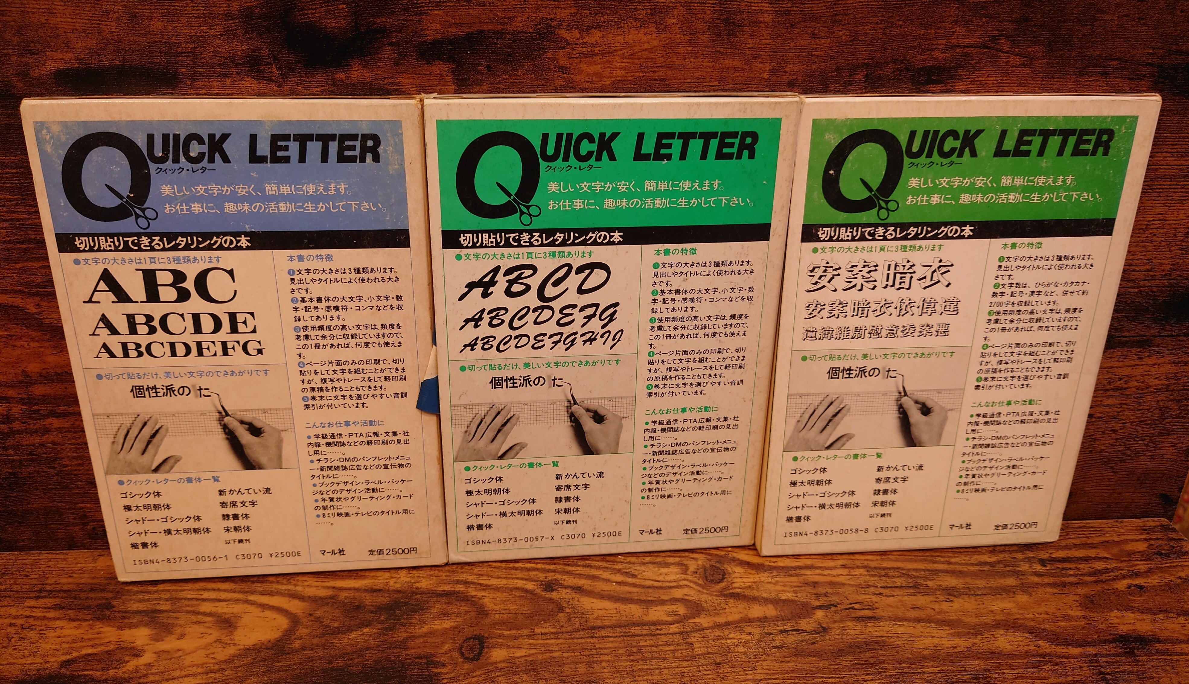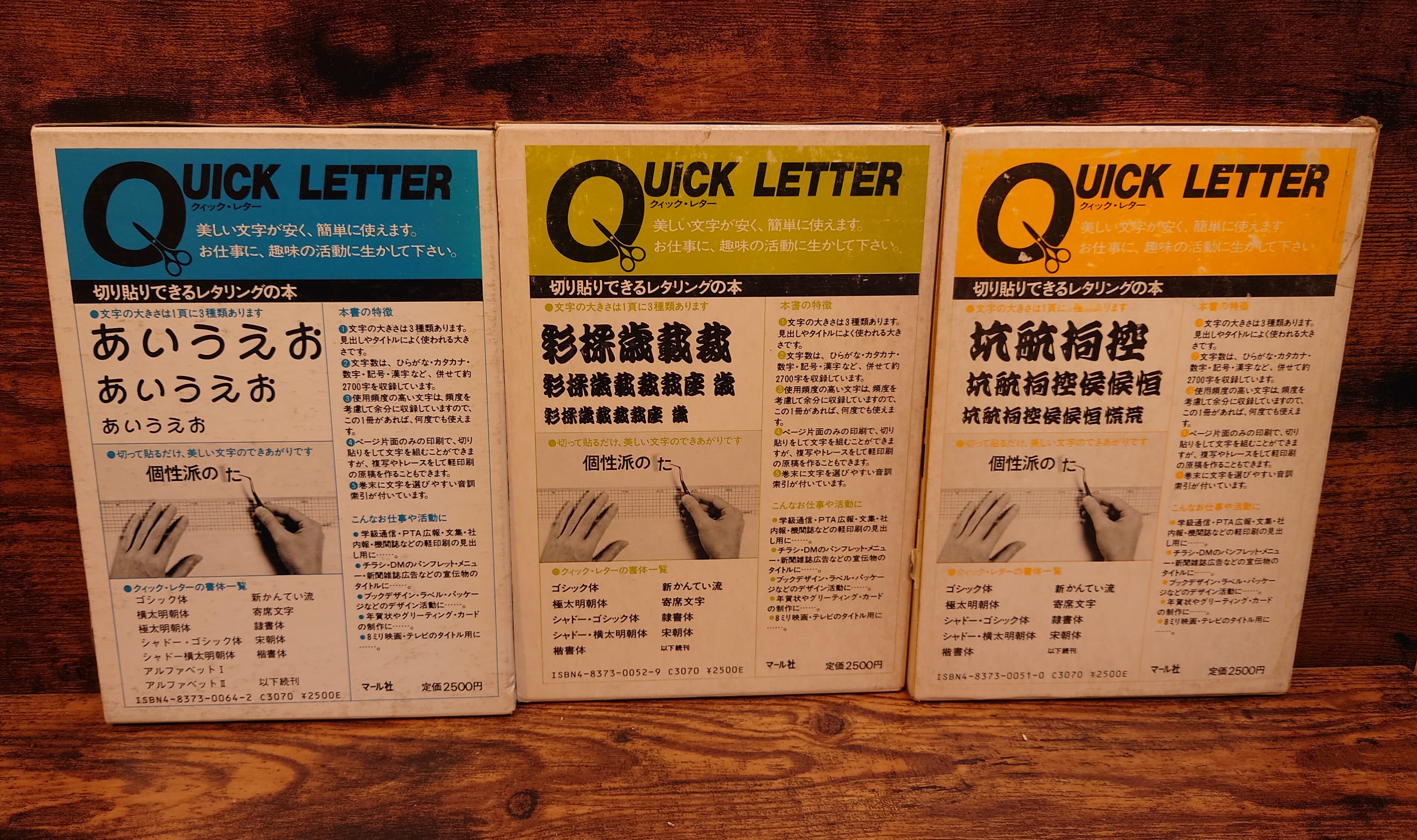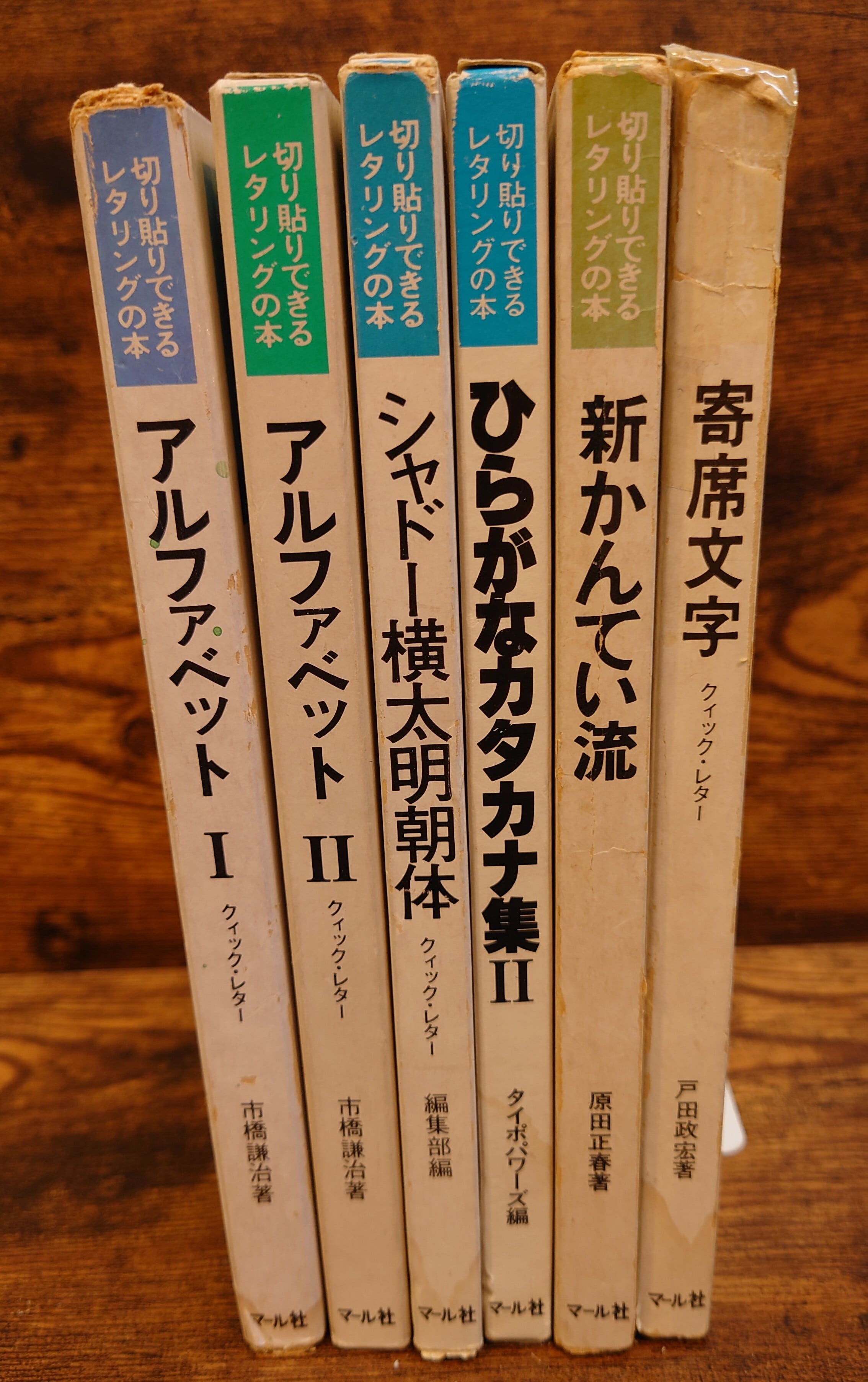 <古書>マール社/1980年~1986年発行/A5横 アルファベット 1 アルファベット 2 シャドー横太明朝体 新かんてい流 ひらがなカタカナ集2 寄席文字 函は傷みあります、一部破れテープ補修あり。ヤケ、シミ、濡れシミ跡あり。函の状態良くありません。本体は裸本、表紙、スレ。天地小口、ヤケ、少シミ、小キズ。本文、ヤケありますが切り取りなどは無く、使用上問題ありません。経年感ご了承ください。 管理番号M-実用