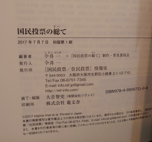 <古書>今井一・編著+「国民投票の総て」制作・普及委員会/「国民投票/住民投票」情報室・発行/2017年7月7日初版1刷/A5/305頁 カバー、スレ、キズ少々。天地小口、本文、薄くヤケ。帯あり。見返しに編著者サインと日付記入あり。 増補版出ていますが、こちらは初版版です。 管理番号M-社会、政治