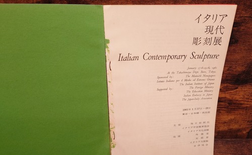 <古書>毎日新聞社/美術出版社・制作/会場・日本橋高島屋/B5 裸本。表紙と本体が離脱しています。表紙、スレ、キズ、ヨレ、ヤケ、シミ、汚れ、角折れ、背は破れ。表紙の状態良くありません。天地小口、ヤケ、シミ。本文、ヤケ、一部シミ。通読に支障はありません。古書感ご承知おきください。美品ではありませんのでご了承ください。読めれば良いという方向き。 図版はモノクロ中心、一部カラー。 <寄稿>イタリア現代彫刻の展望/ロドルフォ・バルッキーニ(バドバ大学美術史学科教授) 管理番号M-アート、図録