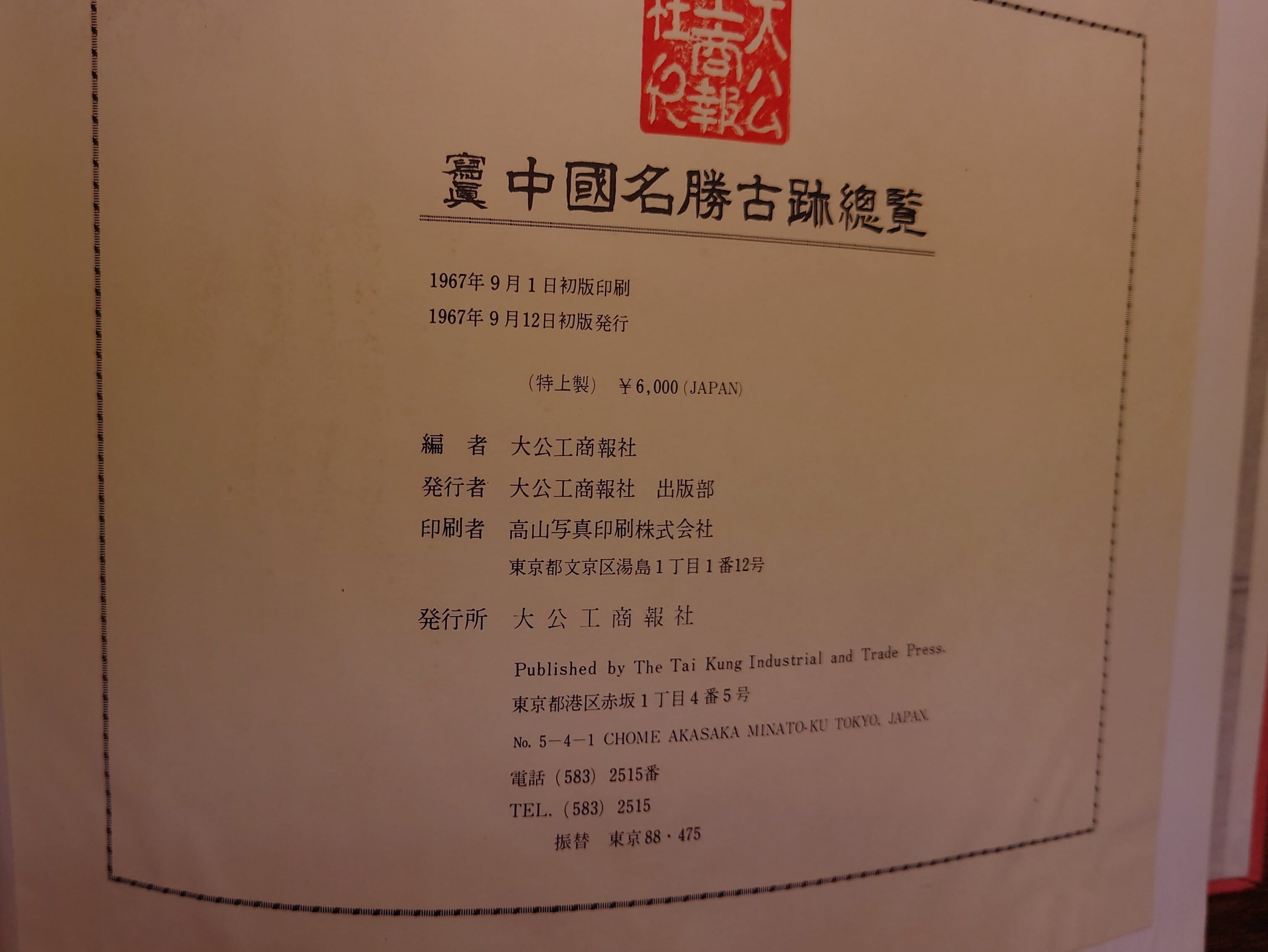 <古書>大公工商報社・編/大公工商報社 出版部/1967年9月12日初版/B4/210頁 和文、英文、中文、3カ国語表記。 函、スレ、キズ、ヤケ、シミ、角・縁傷み、下部は破れあり。函の状態良くありません。本体カバー無し。表紙布装、スレ、小ヤケ、シミ、背は色褪せ少し。天地小口、ヤケ、少シミ。本文、ヤケ、一部シミ、一部皺ヨレ、波打がありますが、通読に支障はありません。古書感ご承知おきください。 管理番号M-実用、写真、紀行