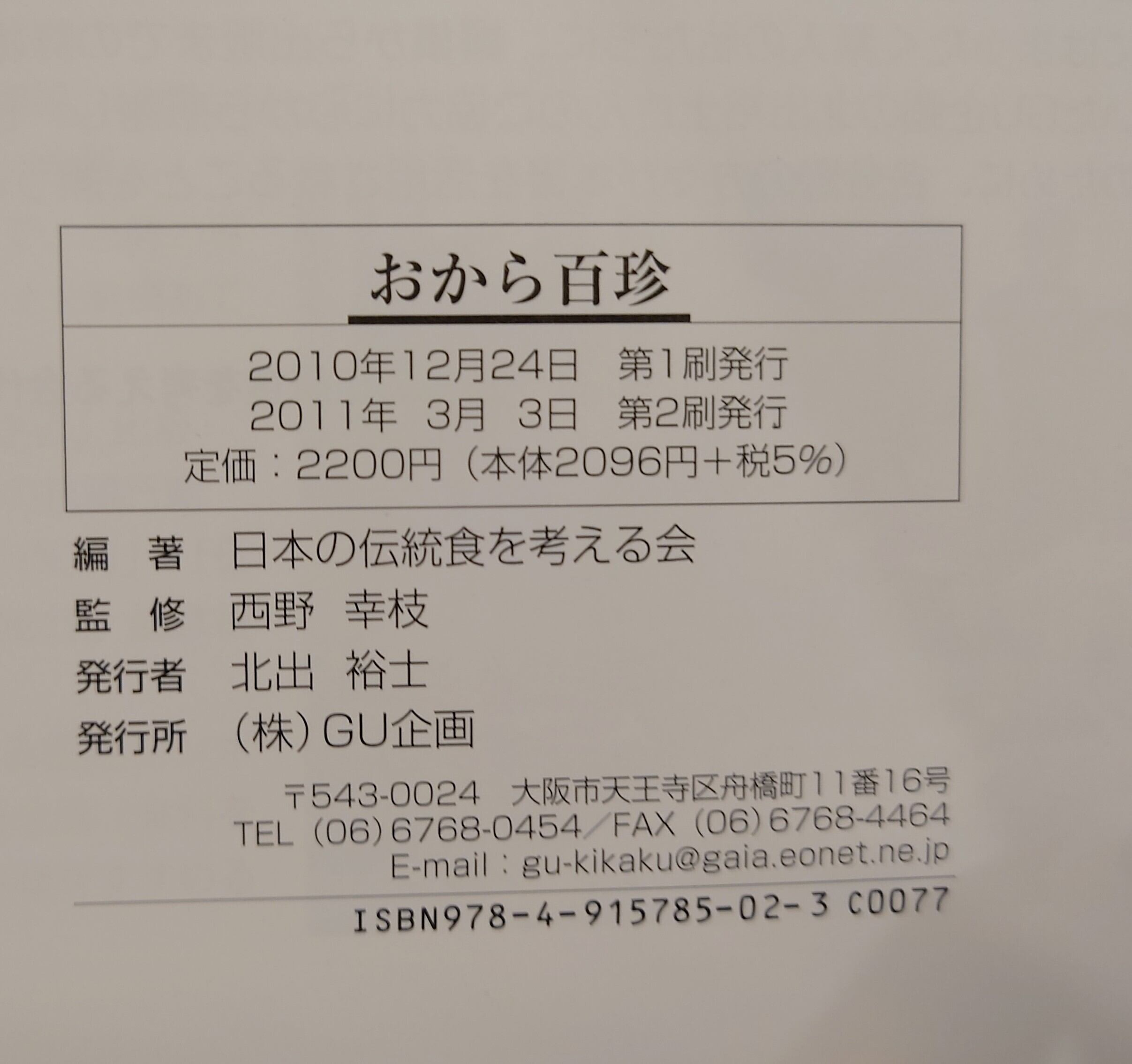 <古書>日本の伝統を考える会・編著/西野幸枝・監修/GU企画出版部/2011年3月2刷。 カバー、スレ、キズ、少ヨレ、使用感少しあります。天地小口、ヤケ少し。本文、薄くヤケありますがおおむねきれいです。帯なし。 日本各地のおからを使った郷土食を100種類以上掲載。その豊富なバリエーションにちょっとビックリします。後世に残したい、食の伝統の一つ。 管理番号M-6