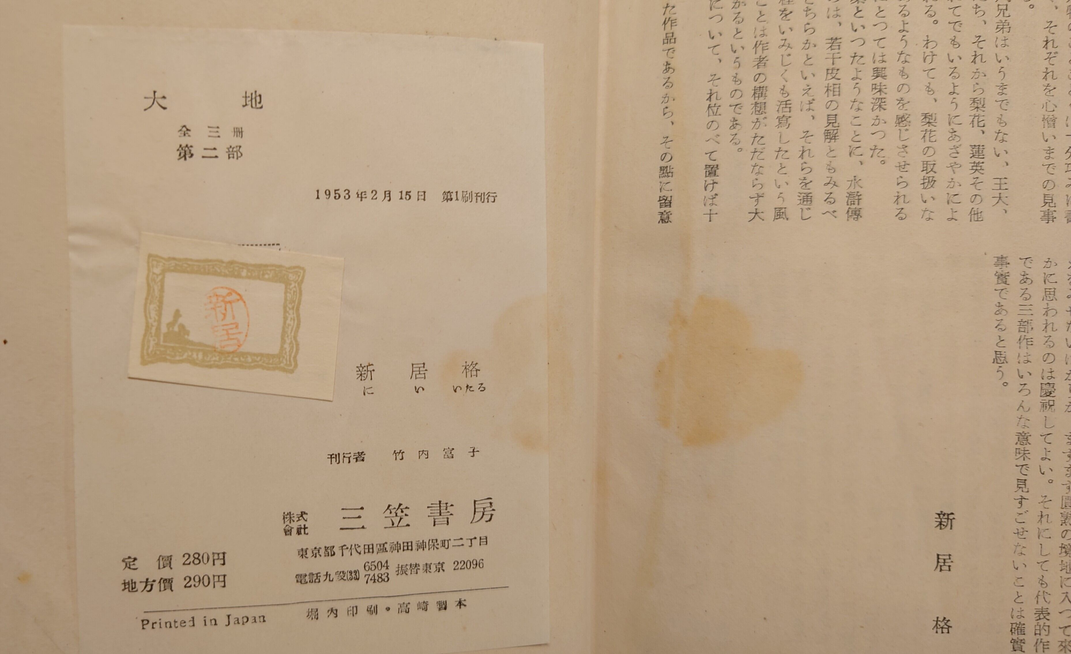 <古書>パール・バック著/新居 格・訳/三笠書房。1952年~1953年。 全訳3冊セット。セロファンカバー、ヤケ、破れ、皺ヨレ。紙カバー、ヤケ、シミ、破れ、皺ヨレ強いです。天地小口、強いヤケ、シミ。見返し、扉、ヤケシミ。本文、ヤケ、一部シミ、一部印字うすめのところありますが読書には支障ありません。帯ありますが、皺ヨレあり。画像参照ください。古書感ご了承ください。