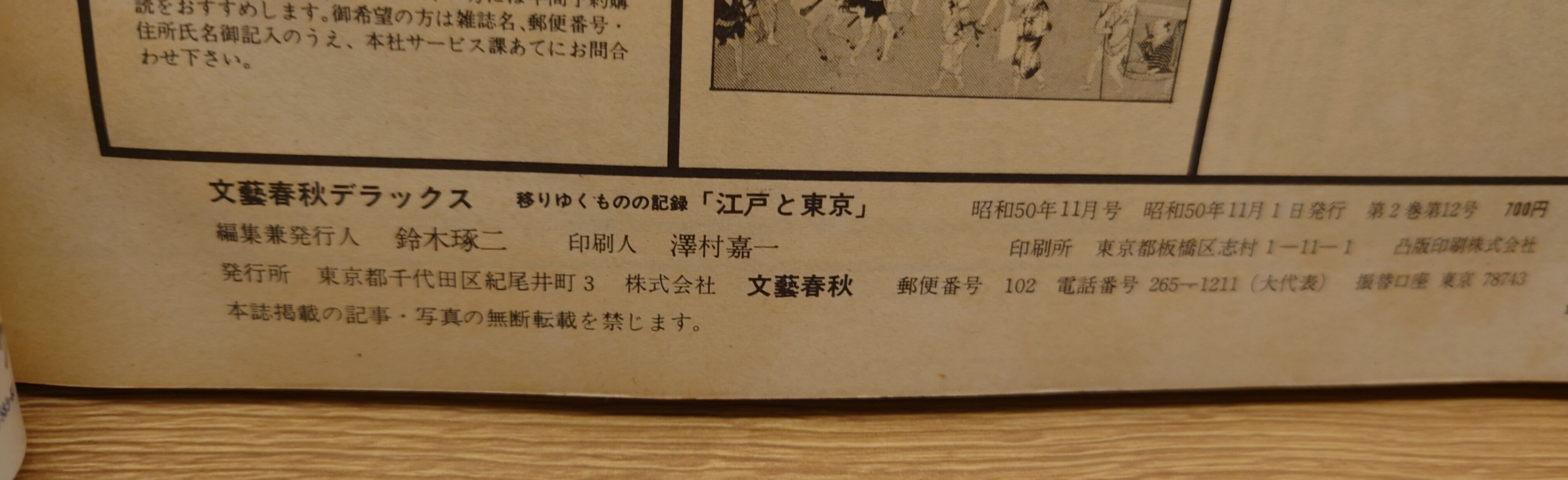 <古書>昭和50年11月号・第2巻第12号・通巻19号/文藝春秋社/A4/170頁 目次ページが欠損していてありません。表紙、スレ、キズ、ヨレ、少ヤケ、少シミ、少汚れ、上角は全体に反りあります。画像参照ください。天地小口、ヤケ、シミ、キズ。小口には強めのキズあります。本文、ヤケ、周辺部ヤケ強め。通読に支障はありませんが、古書感ご承知おきください。