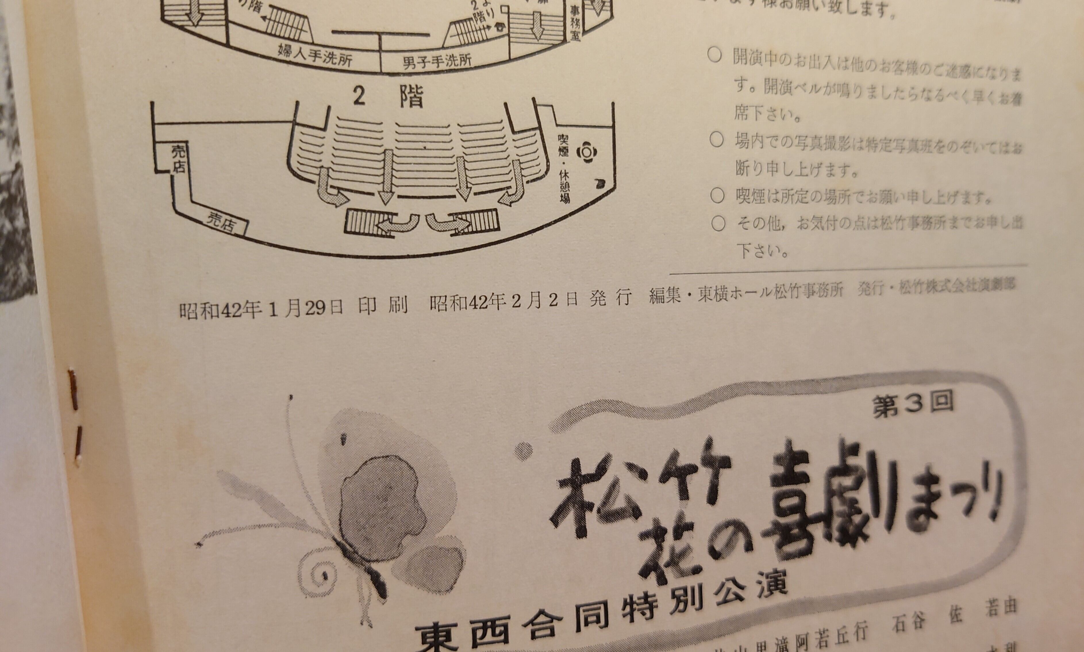 <古書>東横ホール松竹事務所・編集/松竹株式会社演劇部・発行/昭和42年2月/B5/40頁 表紙、スレ、キズ、ヨレ、少シミ、少汚れ、角折れあります。天地小口、ヤケ、キズ、シミ。本文、ヤケ、上角の折れが少しあります。通読に支障はありません。古書感、使用感ご承知おきください。 三之助といわれた、尾上菊之助、尾上辰之助、市川新之助の若手を揃えた舞台公演。 紙面で三之助の対談もされています。 尾上菊之助と市川新之助のサインが入っています。 画像参照ください。 管理番号DB644