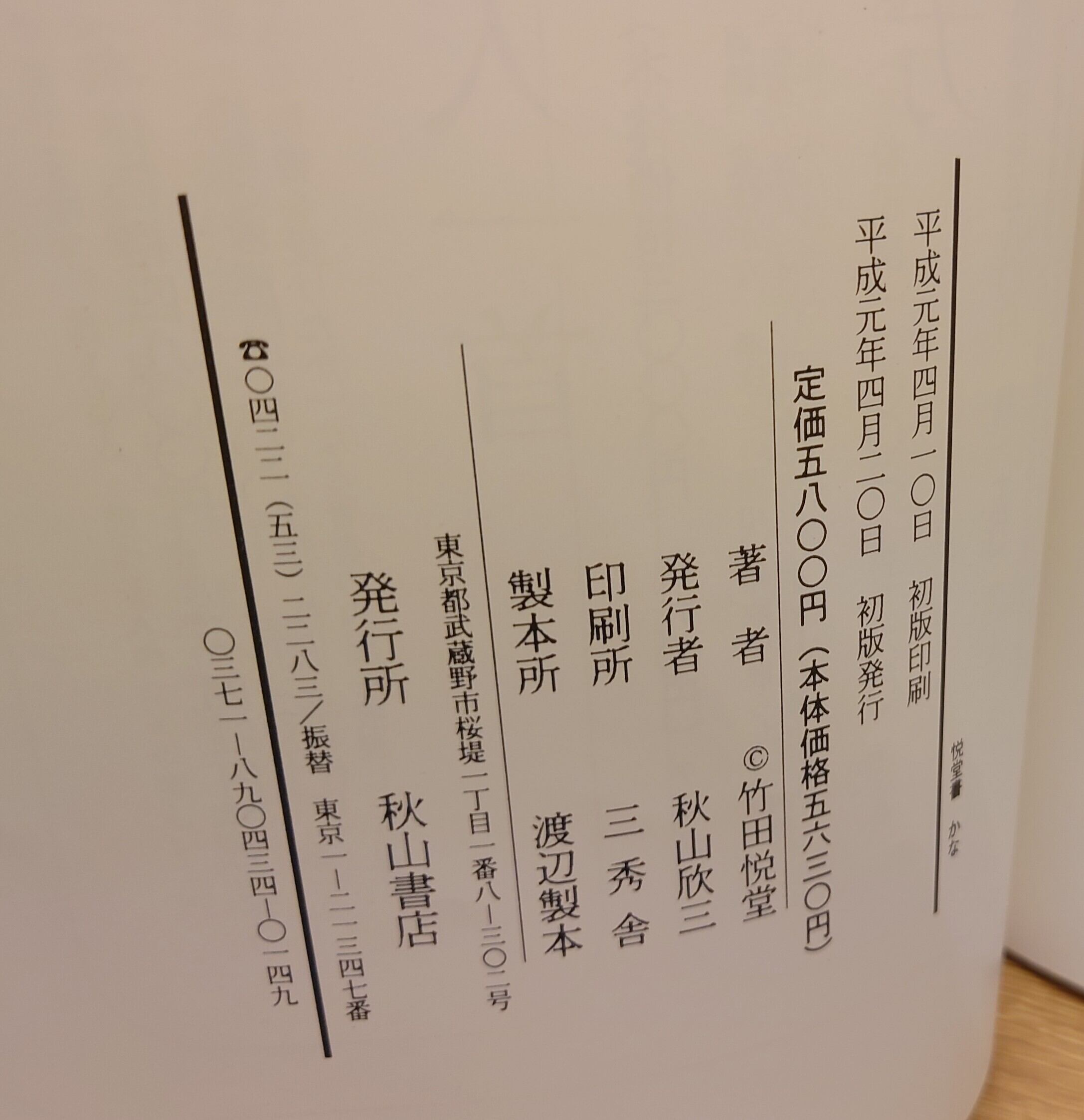 <古書>竹田悦堂・著/秋山書店/平成元年4月初版/A4/135頁 見返しに著者サインあり。 ビニカバ、皺ヨレ、縮み、少ヤケ、少汚れ、背の皺ヨレ強いです。紙カバー、縁ヨレ、少シミ。 天地小口、少ヤケ、少キズ、少汚れ。本文、少ヤケ、一部シミ、2カ所ほど薄い墨跡あり。17ページから21ページの屏風・山上憶良作品は本体から離脱しています。画像参照ください。通読に支障はありません。帯なし。訂正表つき。使用感ご了承ください。 管理番号DB680