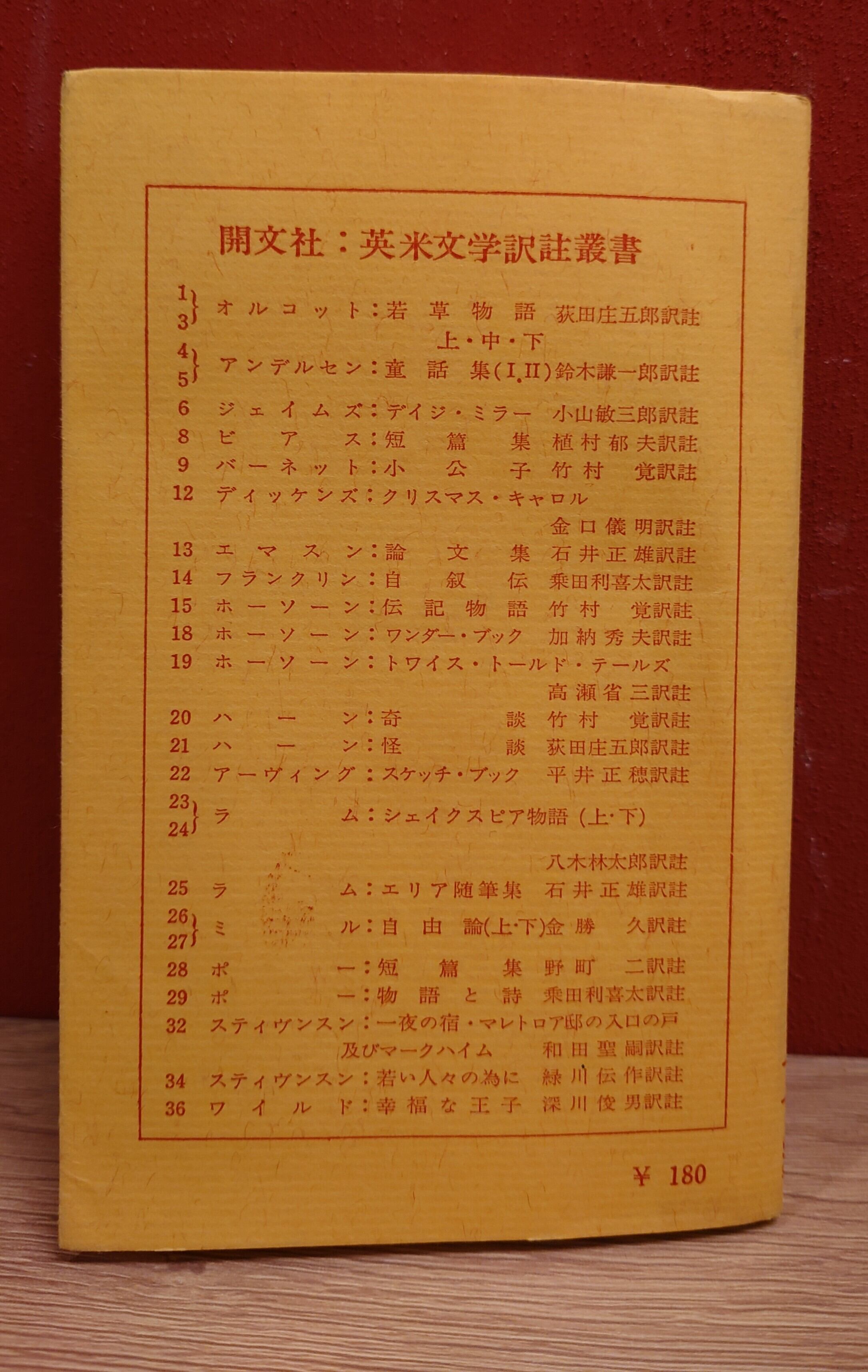<古書>鈴木謙一郎・訳註/開文社/昭和39年4月17版/新書判/186頁 カバースレ、キズ、ヨレ、ヤケ、少シミ。表紙の折れが段付きで強くあります。画像参照ください。天地小口、ヤケ、シミ、汚れ。本文、少ヤケ、縁ヨレ、一部折れ跡、僅かに書き込みと線引きあります。通読に支障はありません。使用感強めです。美品ではありませんのでご承知おきください。読めれば良いという方向き。帯なし。対訳式の記載になっています。 管理番号DB706