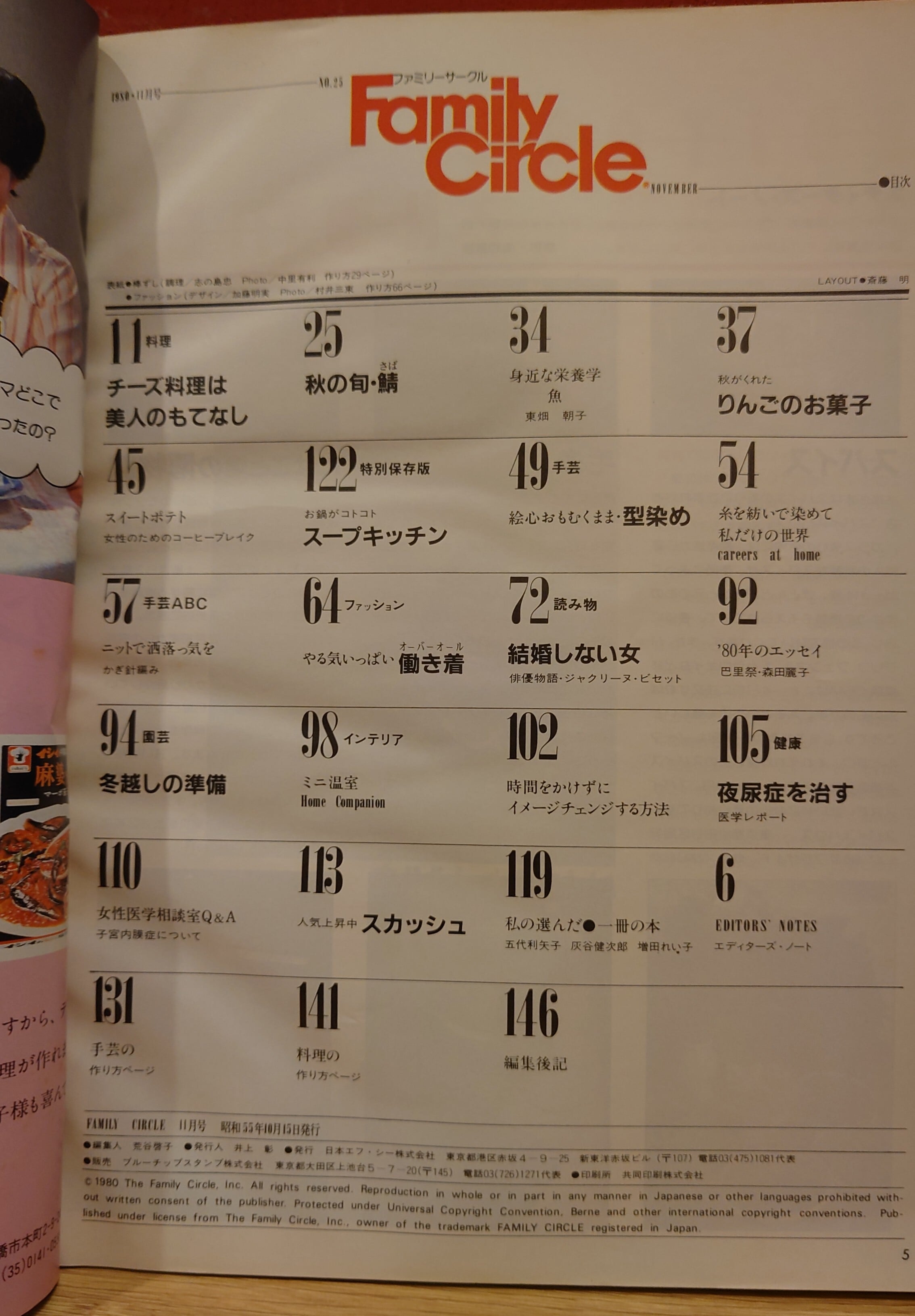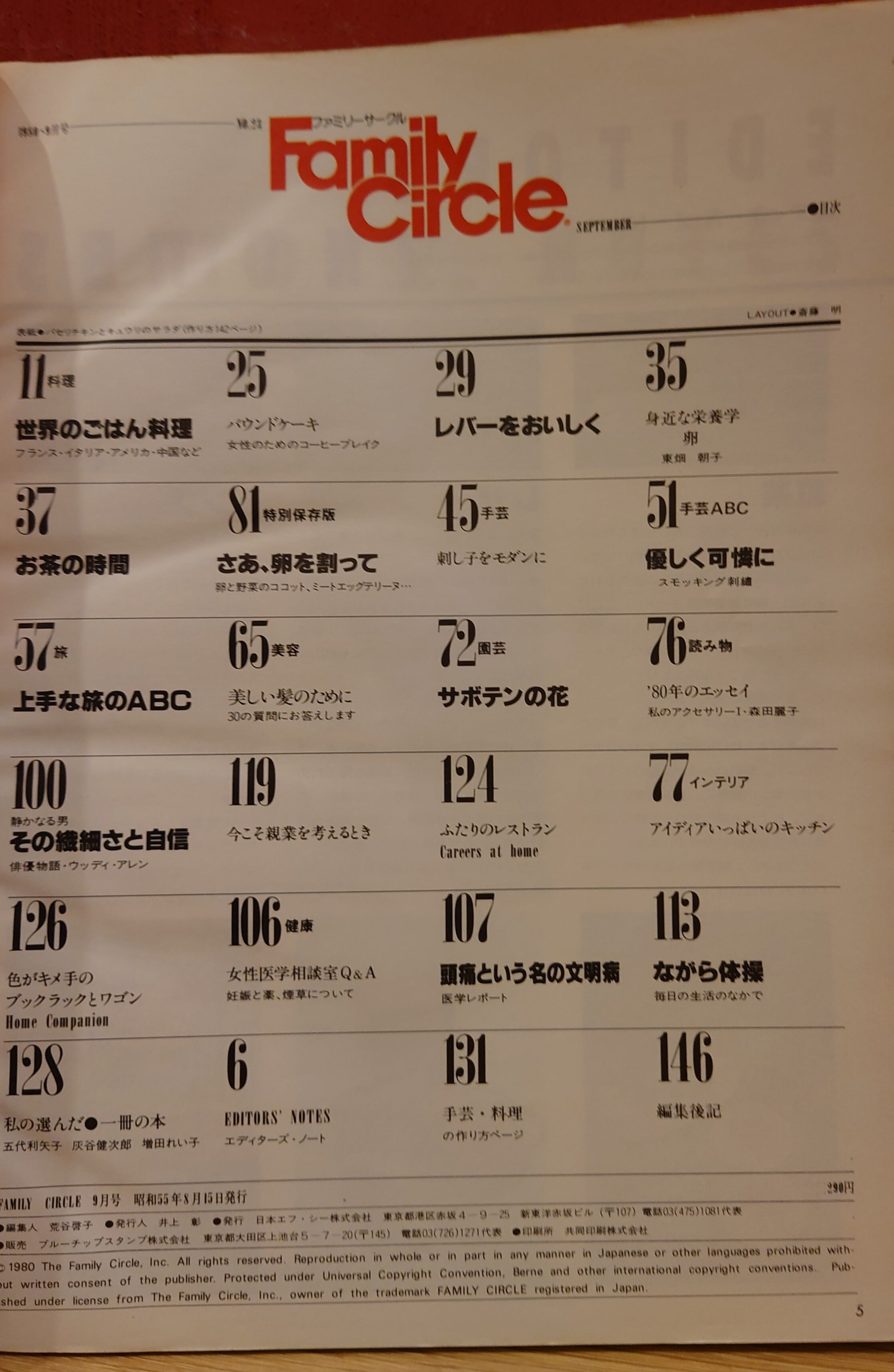 食、料理、美容、健康、服飾、手芸、園芸など女性向けの総合情報誌。1980年の時代の空気が感じられる誌面。
