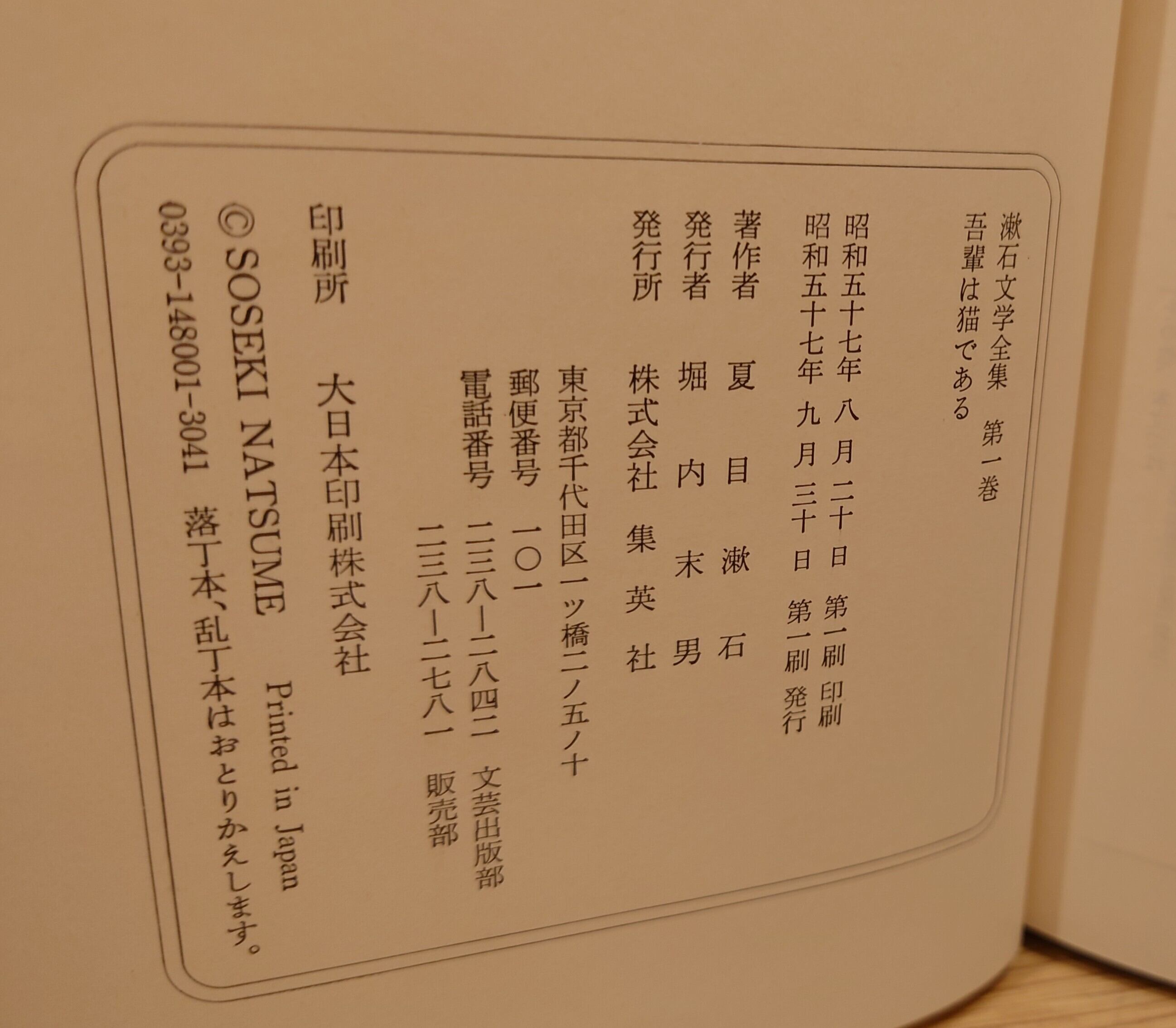 <古書>夏目漱石・著/集英社/昭和57年9月1刷/四六判/771頁 函、スレ、キズ、ヤケ、少シミ、少汚れ、経年感あります。本体ビニカバ、皺ヨレ、縮み、ヤケ。天地小口、ヤケ。本文、ヤケ。通読に支障はありません。経年並。月報等はありません。帯なし。 管理番号DB731