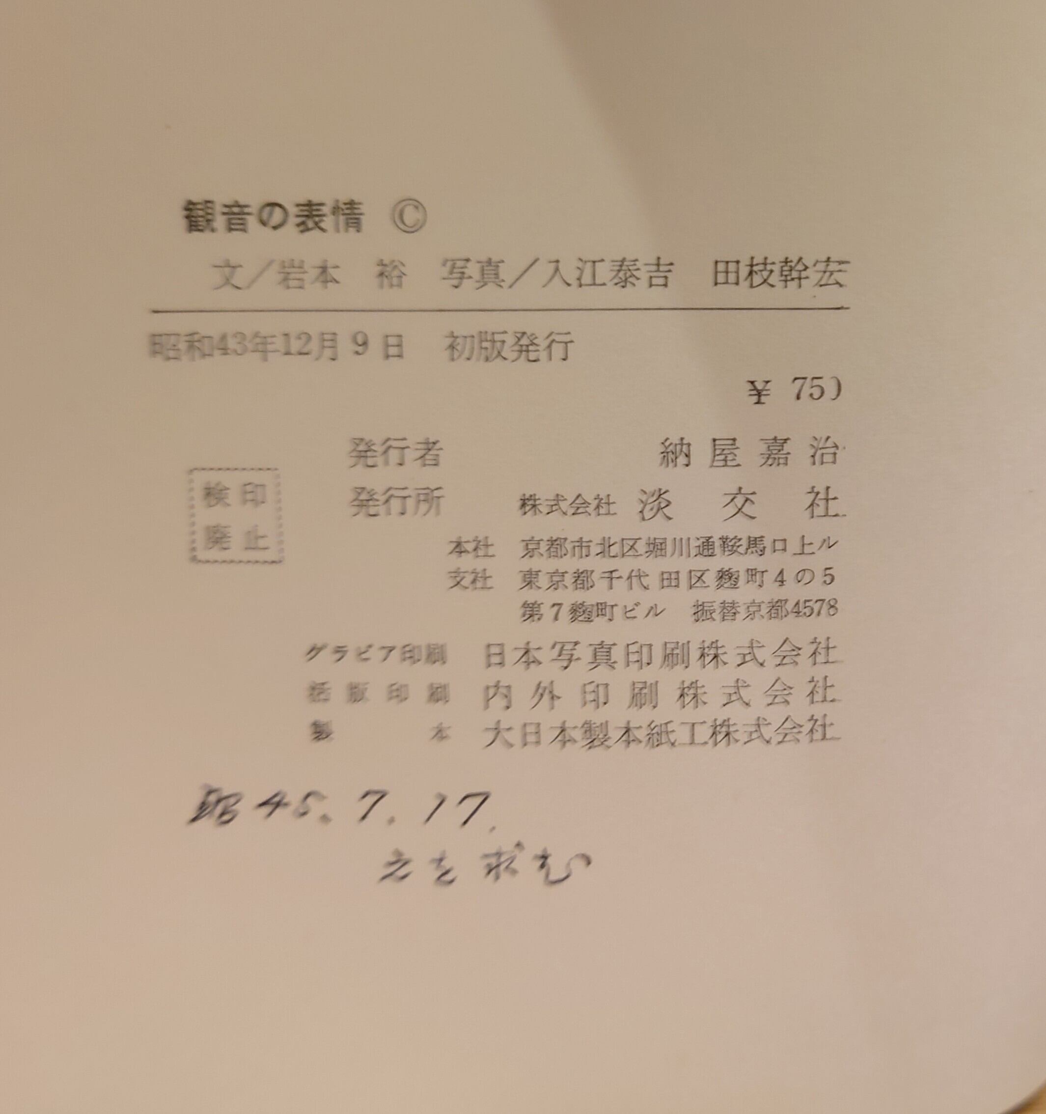 <古書>岩本裕・文/入江泰吉、田枝幹宏・写真/淡交社/昭和43年12月9日初版/A5/205頁+参考地図、図版目録 ビニカバ、ヤケ、スレキズ、縁汚れ、経年感あります。紙カバー、折り返しにシミ多め。天地小口、ヤケ強め、シミ汚れ少し。本文、ヤケ。通読に支障はありません。古書感ご承知おきください。 管理番号DB752